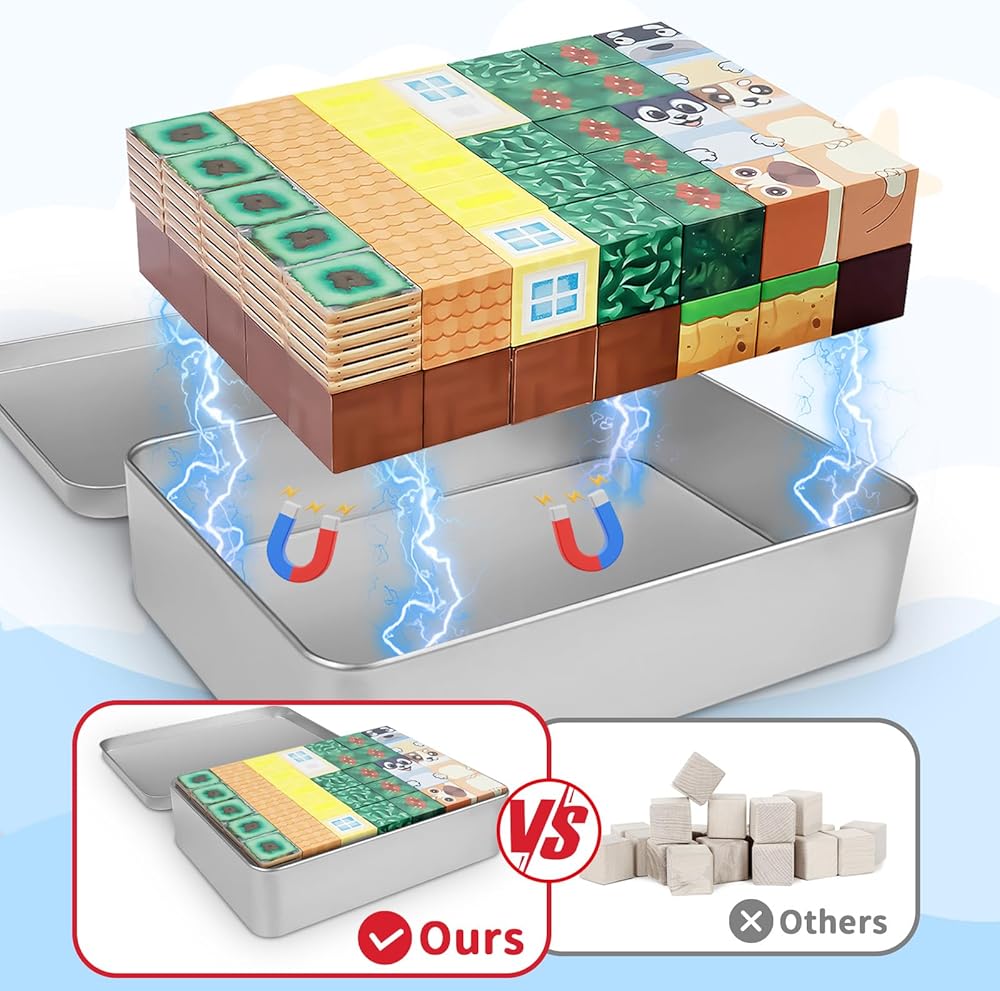 【Compatible & Safe】Made of non-toxic ABS plastic with smooth edges and powerful magnets, these mini magnetic cubes are fully compatible with standard tiles. Safe and long-lasting for kids ages 3+