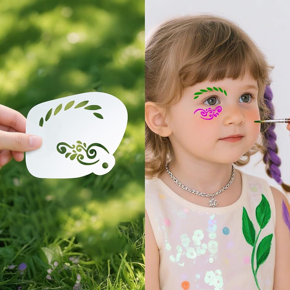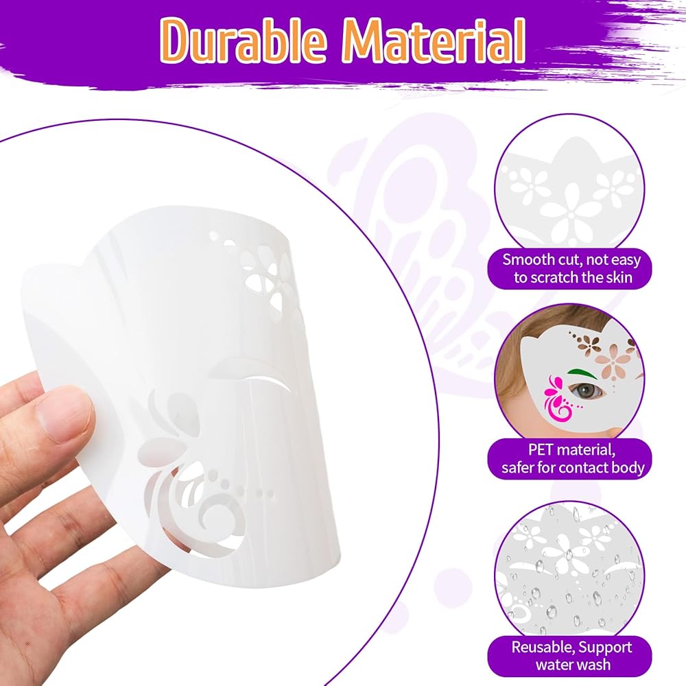 REUSABLE FACIAL PAINTING STENCILS: Our facial templates are made from PET material with rounded edges and smooth surfaces for safe application. They are washable, ensuring they can be used and stored for an extended period.