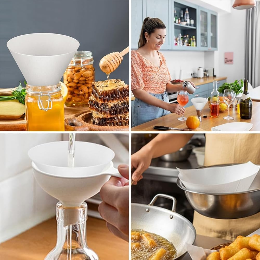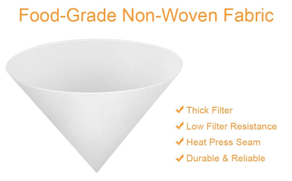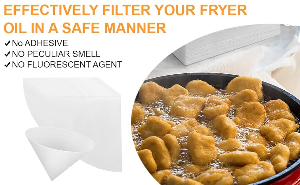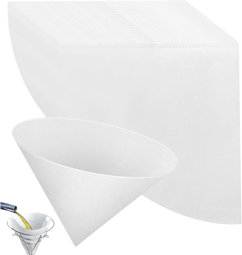 【High Quality】: Deep fryer oil funnel filters are made of food-grade non woven material with heat press seam, soft and odorless, thicker and heat resistant for filtering oil