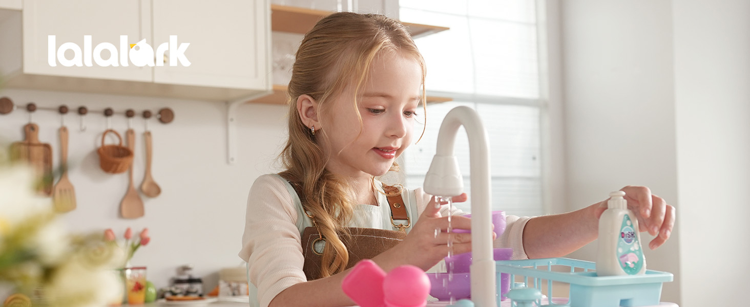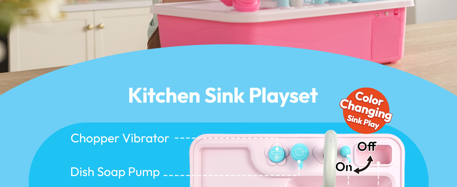 Lightweight Design: Made from durable plastic, this kids play sink is easy for kids to carry and move around, whether indoors or as part of their outdoor play toys
