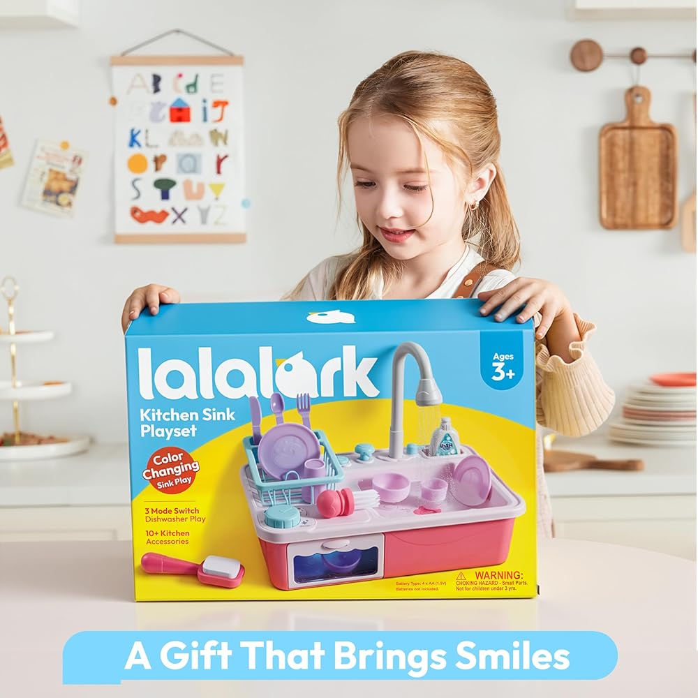 Lalalark Color Changing Play Sink with Running Water, Toddler Sink with Electric Dishwasher, Chopping Sounds and Automatic Water Cycle System, Water Table for Toddlers 1-3 Easter Birthday Gift