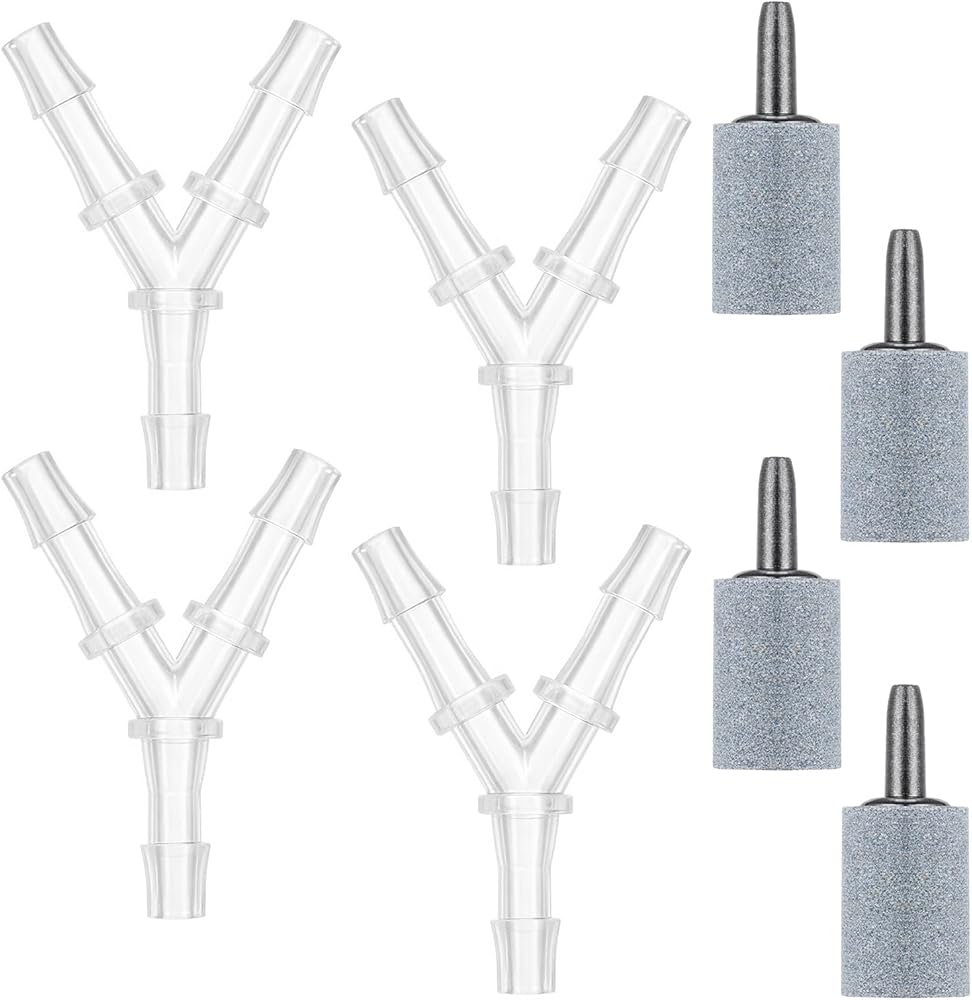 Packing List: 8 Pcs Aquarium Air Connectors and Air Stones Combo (4 Pcs Y-Shaped Tee Connectors + 4 Pcs Bubble Stones)
