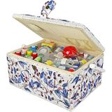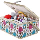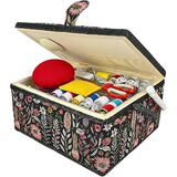 This sewing kit box organizer with compartments is perfect for everyday sewing and mending. Why you need this beginners sewing kit? - Complete sewing basket with sewing kit accessories included - Detachable tray to store small or medium sewing tools - Ergonomic handle with magnetic snap - Perfect for basic sewing and mending - Great for birthday, Christmas, retirement presents This sewing storage box is timeless wooden basket with lid and body covered with stylish flower pattern on the outer lining. The detachable tray able to organize all the small sewing tools. You can use the sewing basket organizer to make craft, stitch, or sew a button in no time! As a surprise gift you can give this large sewing box for adult, kids, beginner or professional sewer