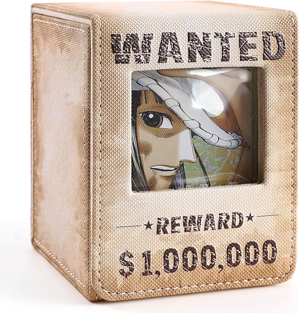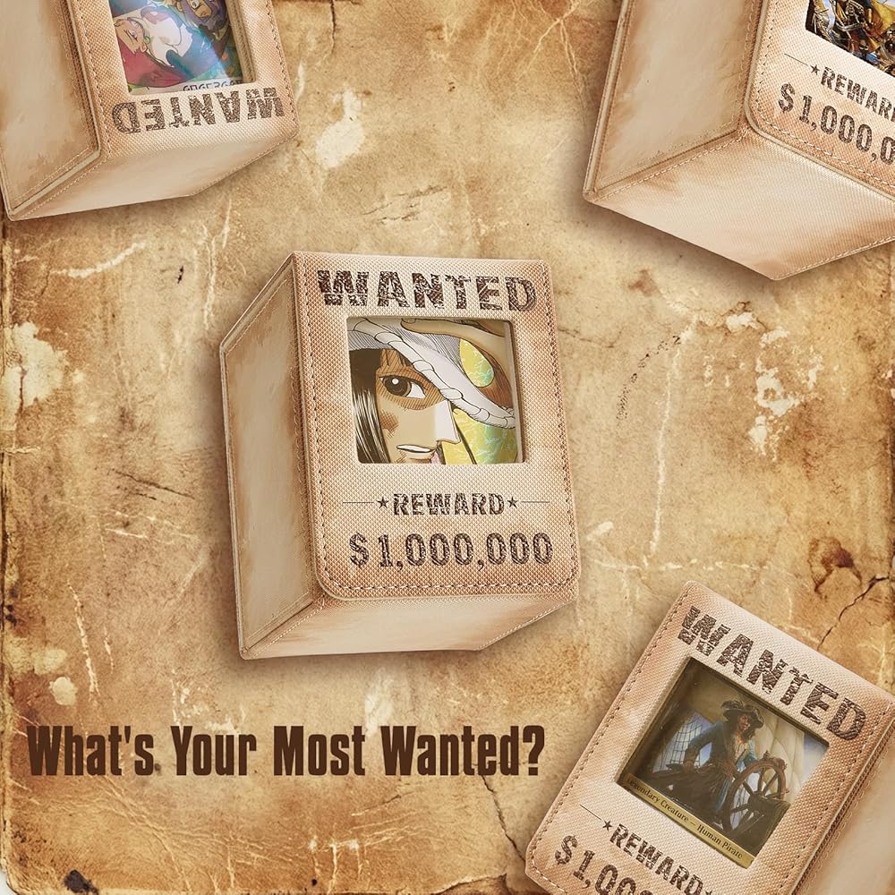 Wanted Poster Themed Deck Box with Commander Display, MTG Card Deck Case Fit 120 Single Sleeved Cards, PU Leather Magnetic Card Storage Box with 2 Dividers, Compatible with One Piece/TCG