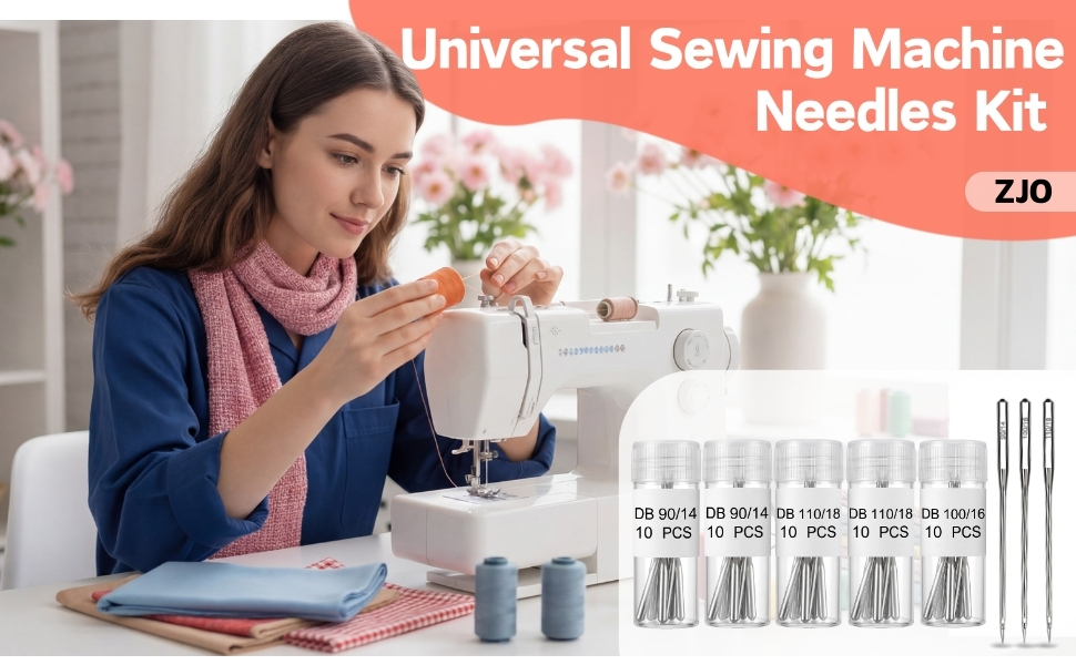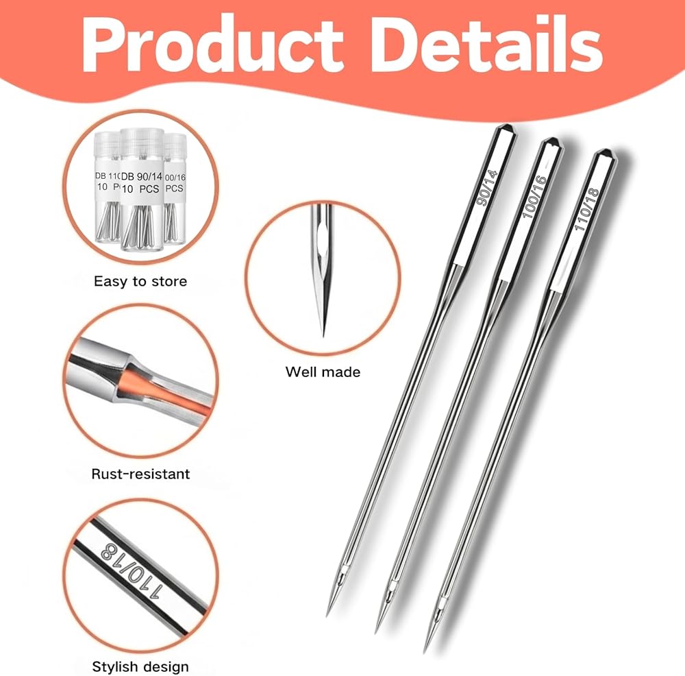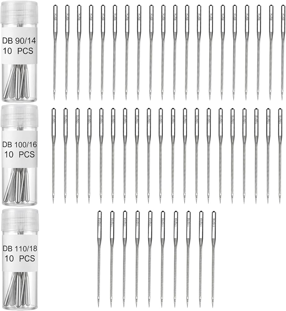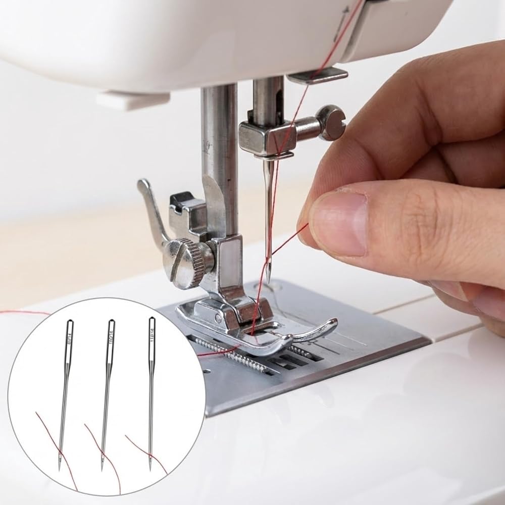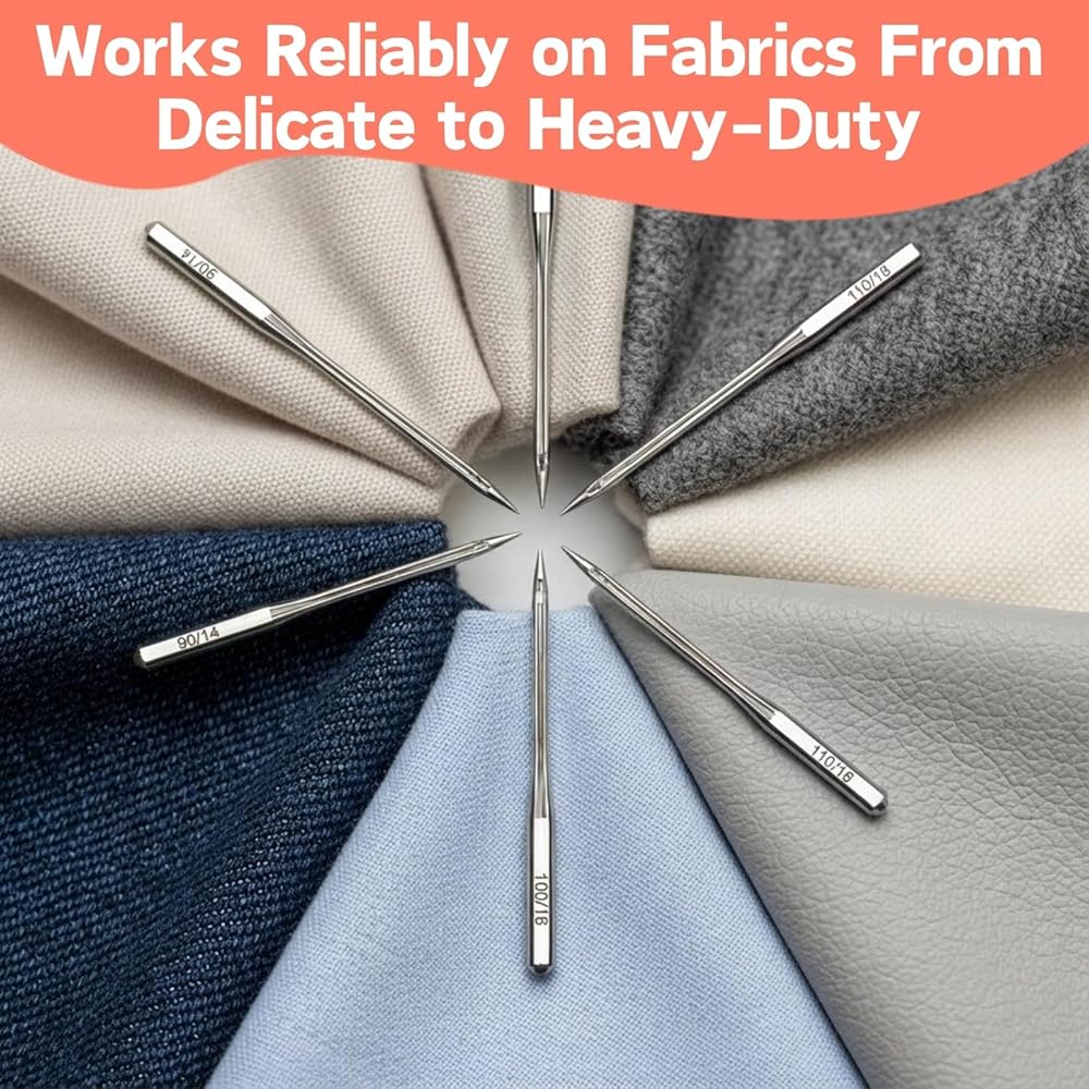 Universal Sewing Needles for Multiple Fabrics:3 essential sizes (90/14–110/18) of universal sewing machine needles help reduce skipped stitches on cotton, denim, and leather