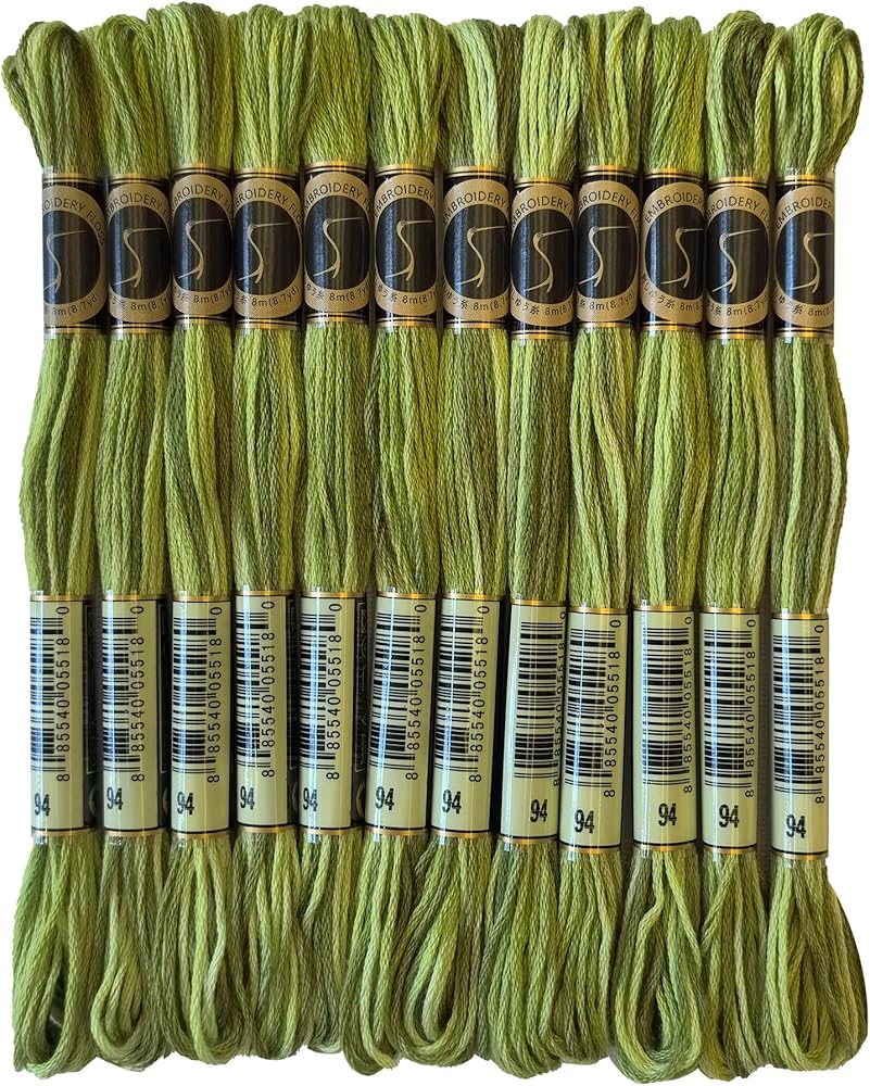 Magical Color Variegated Cross Stitch Thread Color Variations Embroidery Floss Pack, 8.7-Yard, Khaki Green, Pack of 12 Skeins