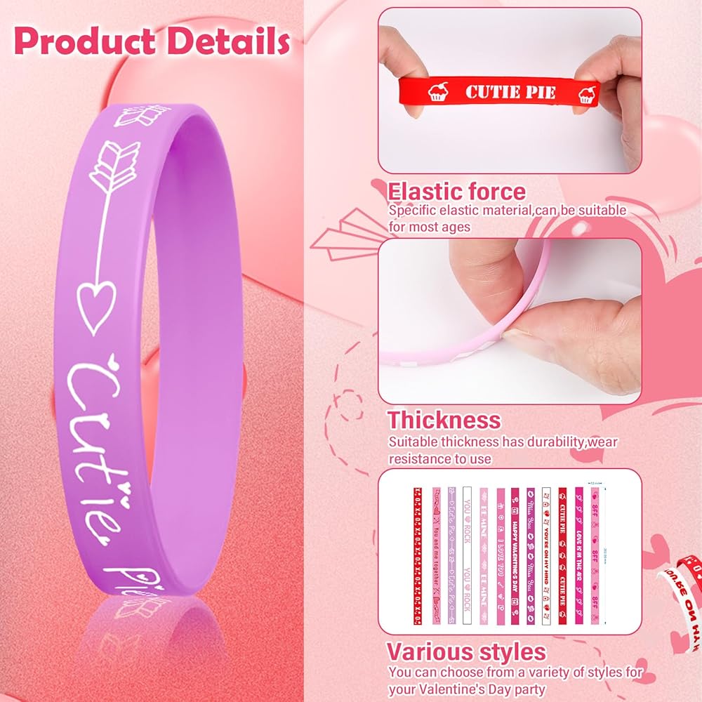 High quality silicone material: Our Valentine's Day bracelet is made of high quality silicone, reliable, safe, odorless, soft to wear, will not easily cause discomfort to your delicate skin, durable