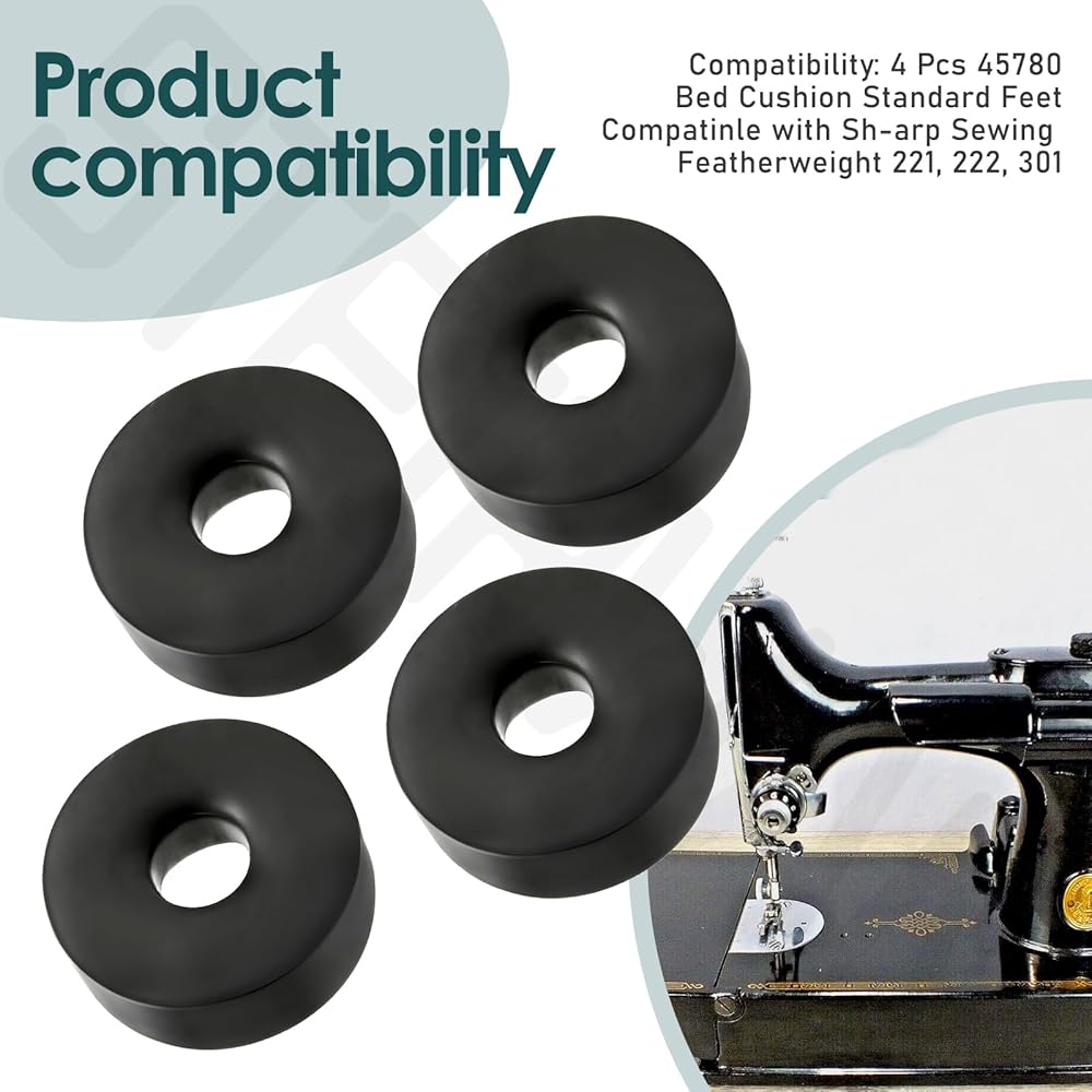 Part Number: Bed Cushion Standard Feet Replace 45780, 45780-S Compatibility: 4 Pcs 45780 Bed Cushion Standard Feet Compatinle with Sh-arp Sewing Featherweight 221, 222, 301