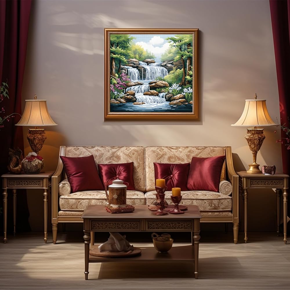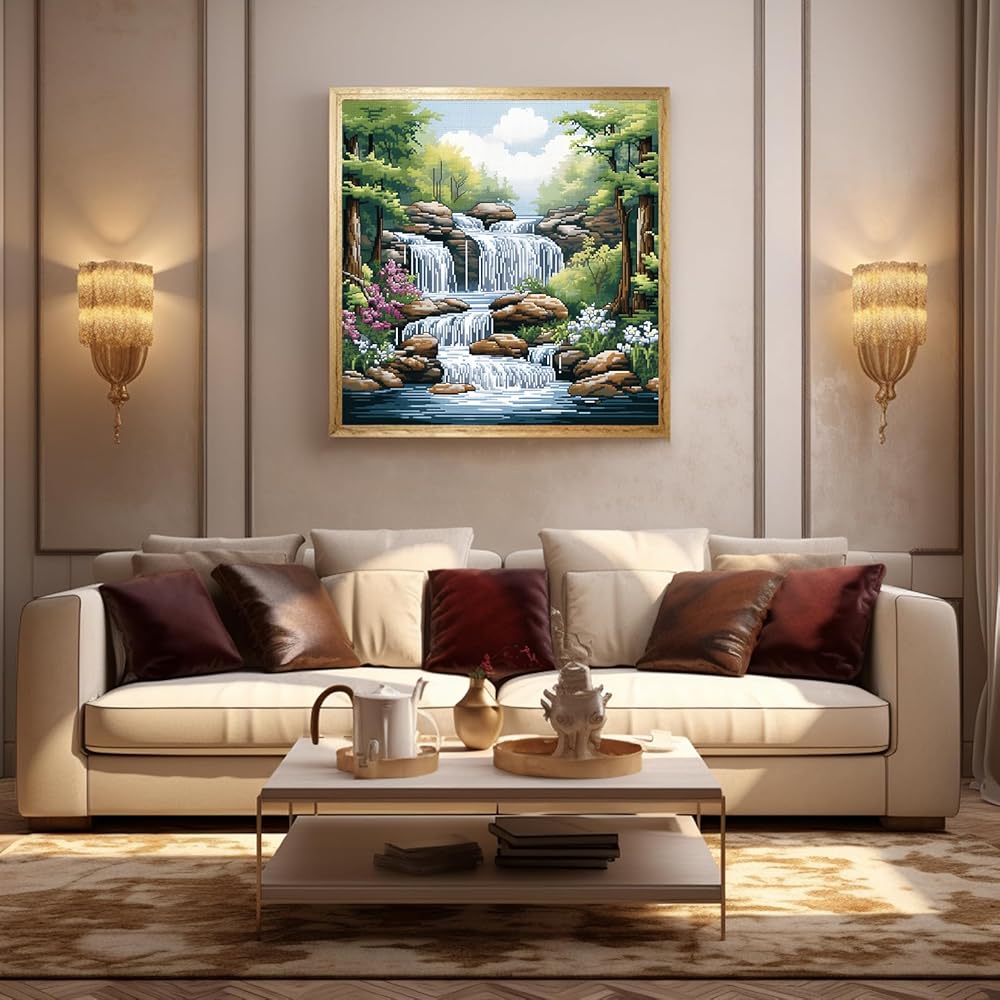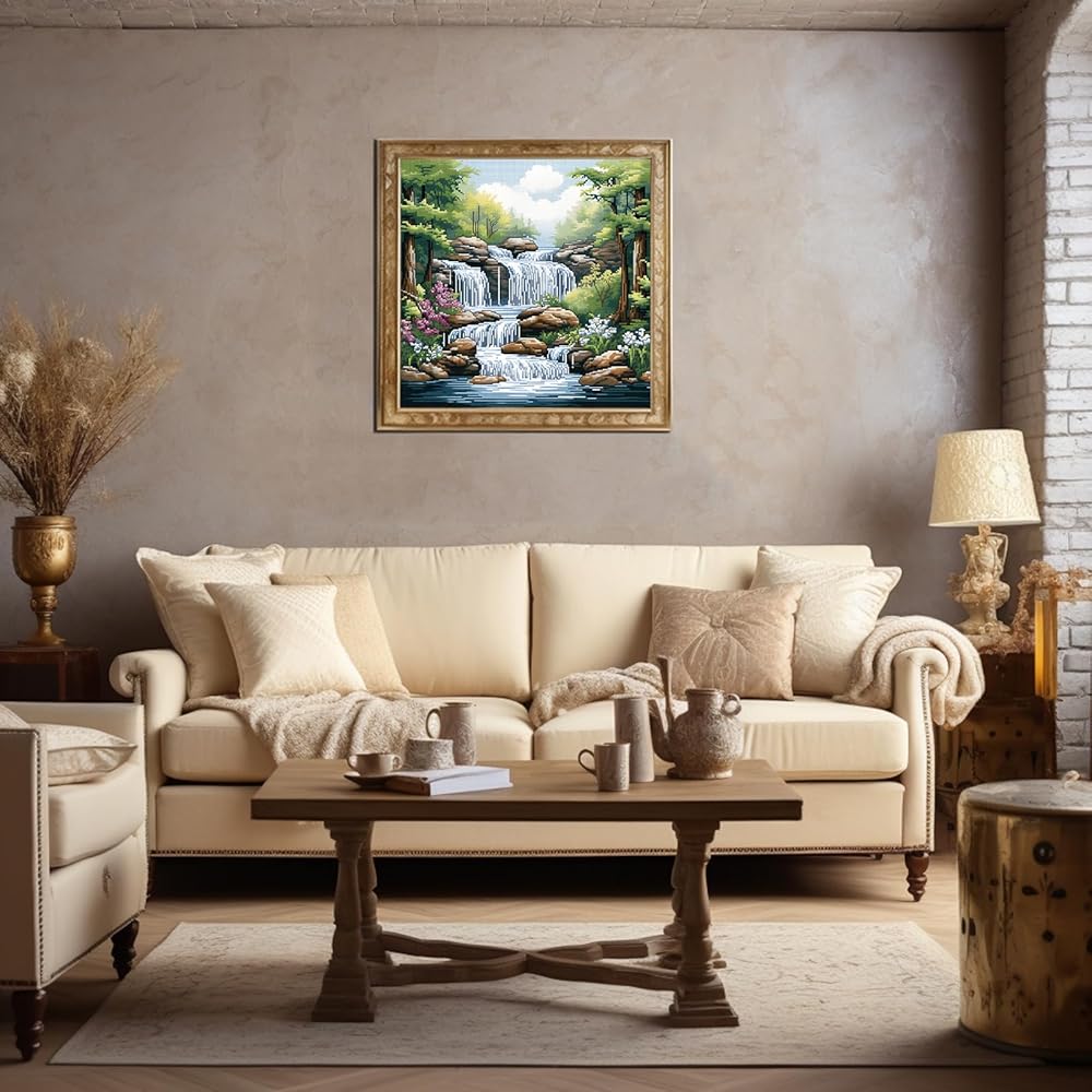 51buyoutgo 11CT Stamped Cross Stitch Kits for Adults - 16x16 in Beginner Embroidery Kit with Funny Easy Washable Stream Pattern, Pre Printed Fabric, Fit for DIY Home Decor, Mom Gifts & Stress Relief