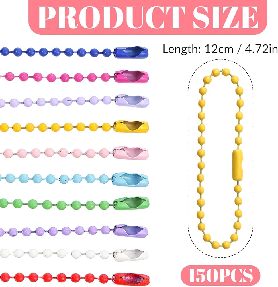 150 PCS Ball Bead Chain Keychain, 4.7 Inch Mixed Color Ball Keychain Dog Tag Chains, Small Metal Beaded Rings with Connector for Key Jewelry Making Hanging Decoration DIY Craft