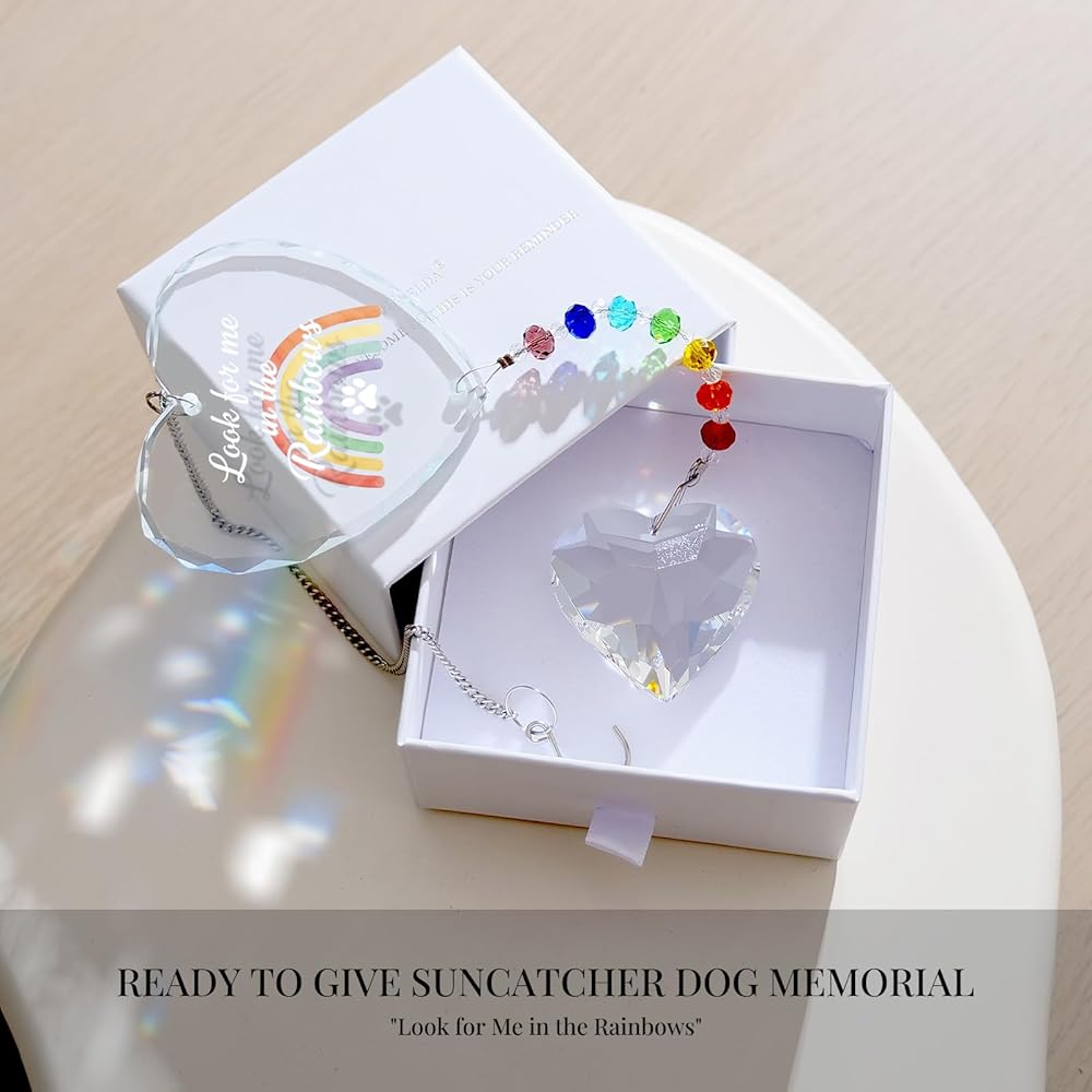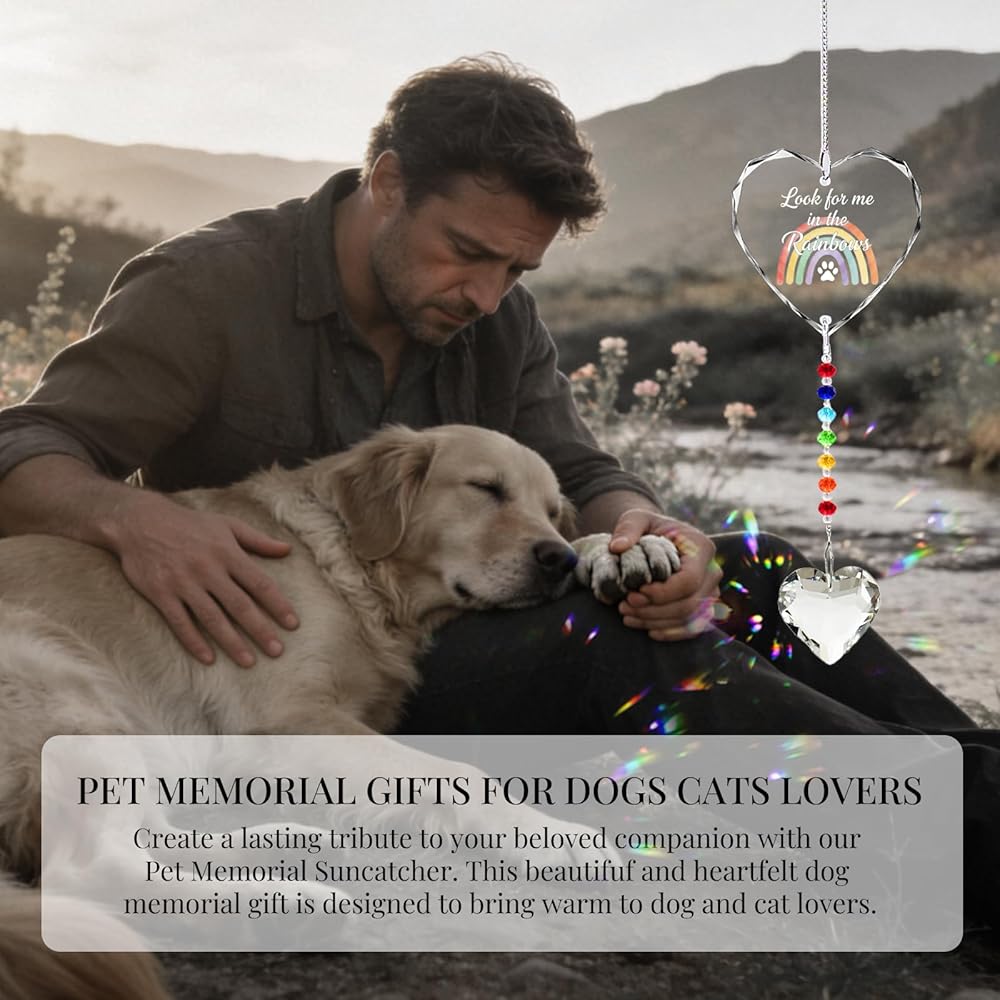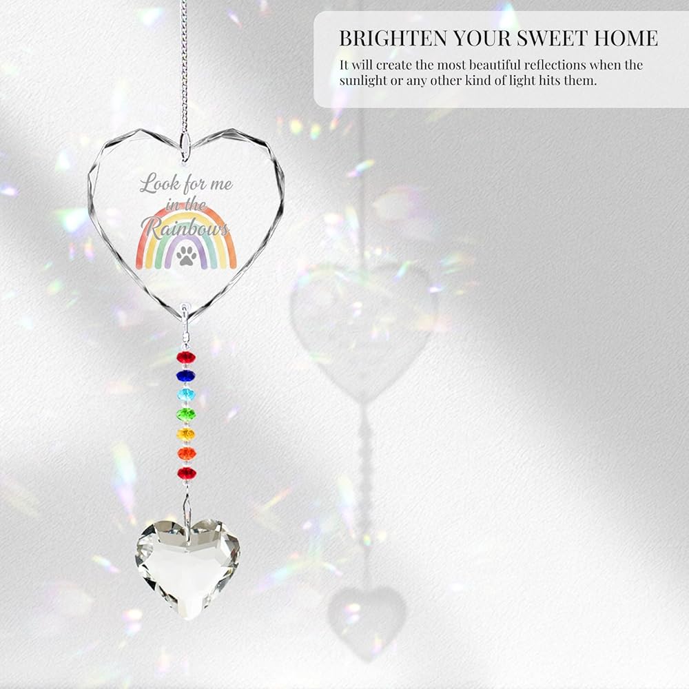 Pet Memorial Gifts for Dogs Cats - Look for me in The Rainbows Crystal Suncatcher Pet Loss, Pet Sympathy, Rainbow Bridge Sympathy Gifts for Loss of Dog Cat, Thoughtful Dogs and Cats Remembrance