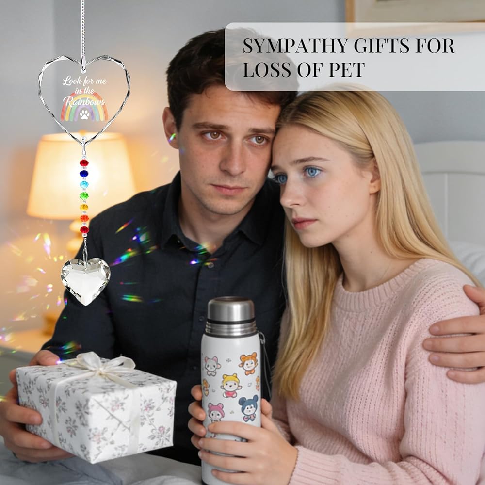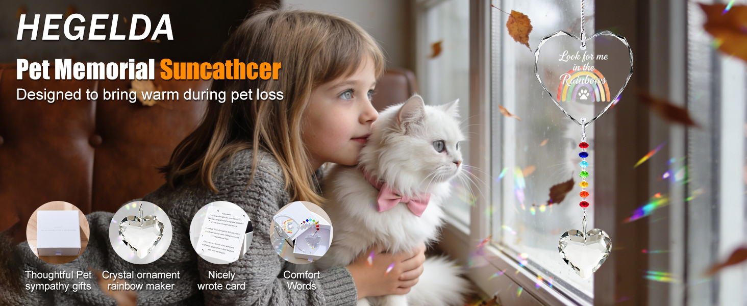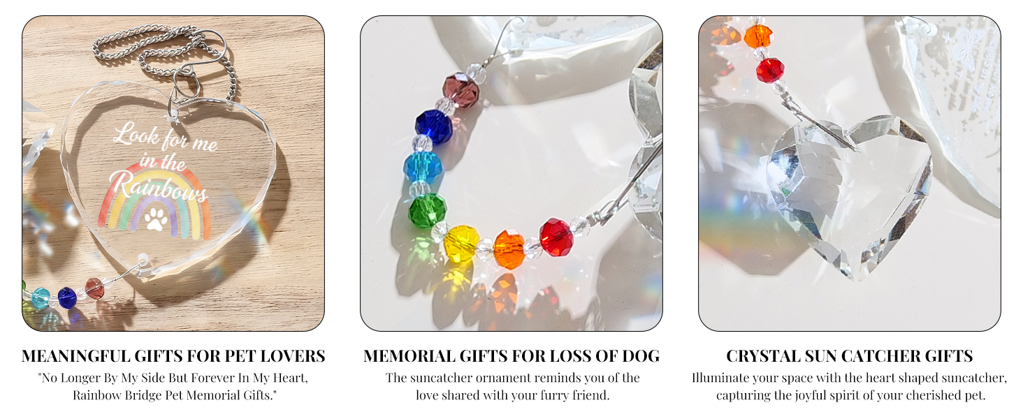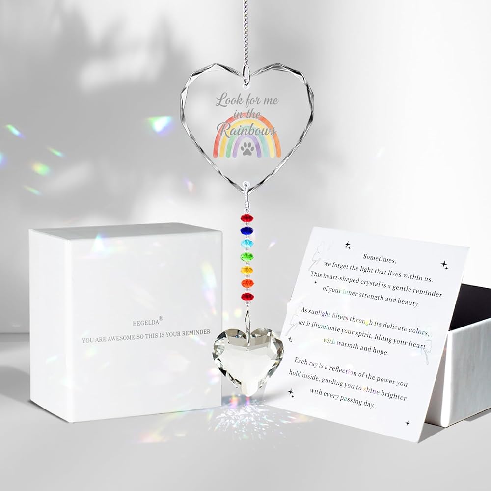 Pet Memorial Gifts for Dogs Cats - Look for me in The Rainbows Crystal Suncatcher Pet Loss, Pet Sympathy, Rainbow Bridge Sympathy Gifts for Loss of Dog Cat, Thoughtful Dogs and Cats Remembrance