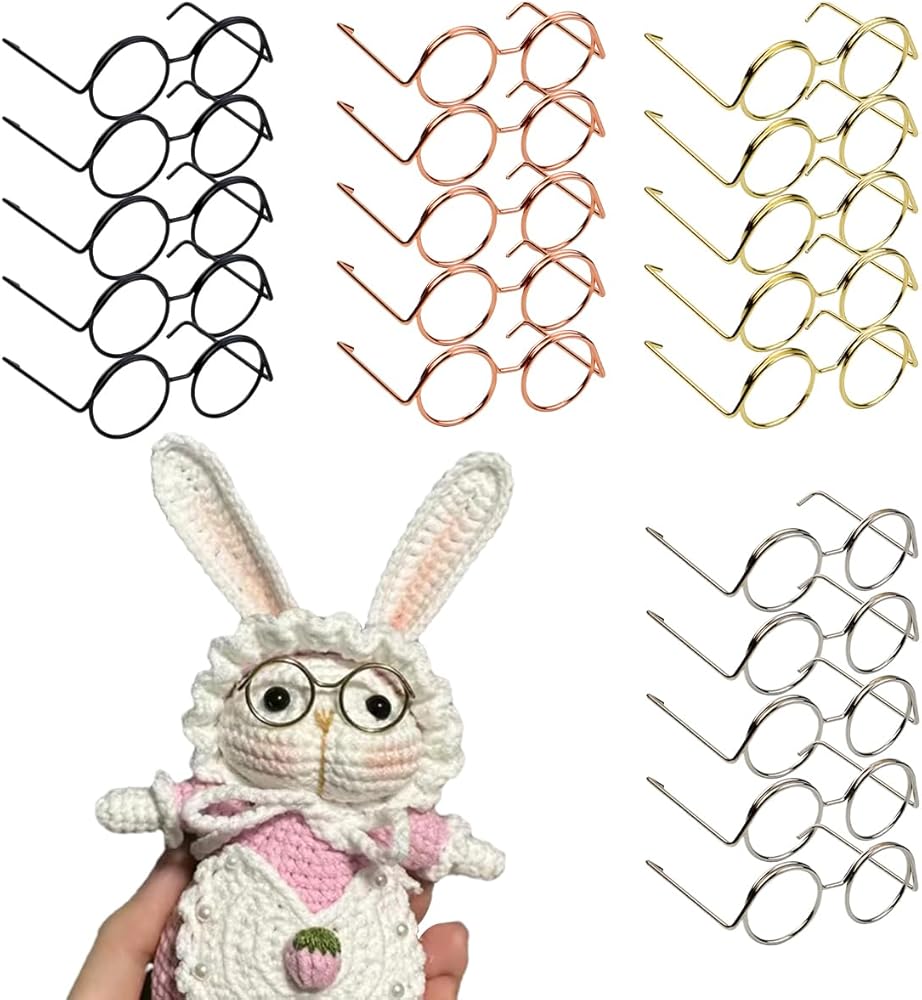 These charming mini doll glasses are perfect for bringing your fabric dolls and craft projects to life. Each set includes 20 pieces of metal wire rim eyewear with round frames, available in four elegant finishes: gold, silvery, black, and rose gold. Measuring approximately 1.38 inches (35MM) in total width, with round lenses of about 0.59 inches (15MM) in diameter and temple arms of 0.98 inches (25MM), these miniature spectacles are perfectly proportioned for dolls and figurines. The frameless lens design and delicate wire construction create an authentic eyewear look that adds character and personality to your creations. Whether you're crafting fabric dolls, creating costume accessories, working on DIY projects, or adding finishing touches to collectible figures, these versatile mini glasses provide endless creative possibilities. The variety of metallic colors allows you to match different doll styles and themes, making them an essential addition to any crafter's supply collection.