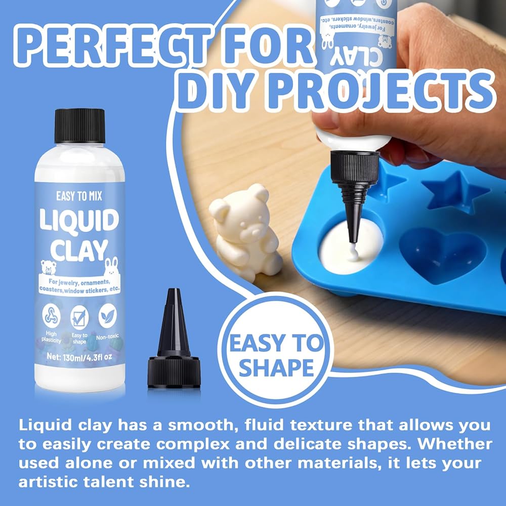 Liquid Clay: It is a liquid polymer clay that looks like white glue in its original form and is as sticky as honey. After baking, it becomes opaque, flexible and strong. (Note: It has a strong smell when baking and needs to be baked in a ventilated environment)