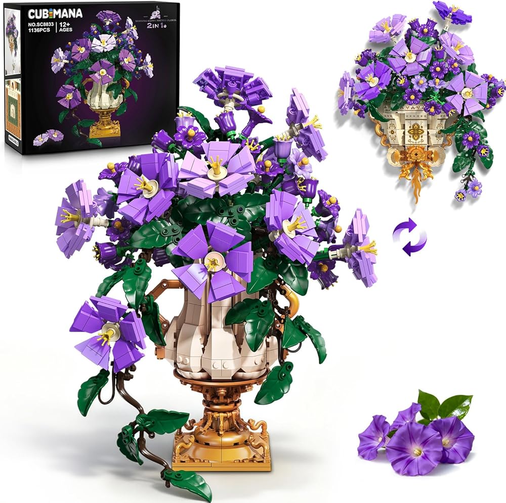 BREATHTAKING DECOR PIECE - Take pride in building and displaying a timeless piece of floral art with this exquisite building set for adults. Enjoy the permanent, vibrant beauty of morning glories without fading or wilting in your home or office. Add a touch of retro romance to your bedroom, vanity, or living room with this convertible morning glory building set. Use it as a table centerpiece, a bookshelf accent, or a wall feature. The flowers arrangement adapts to your decor needs effortlessly.