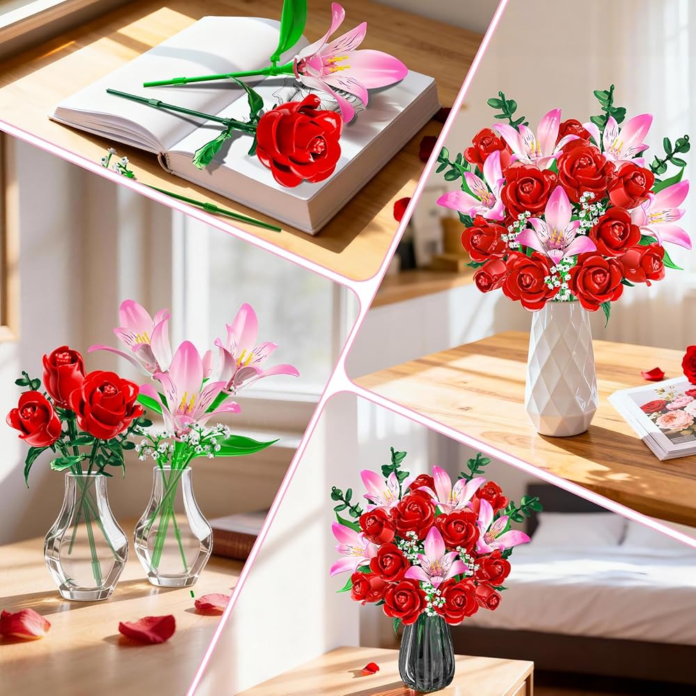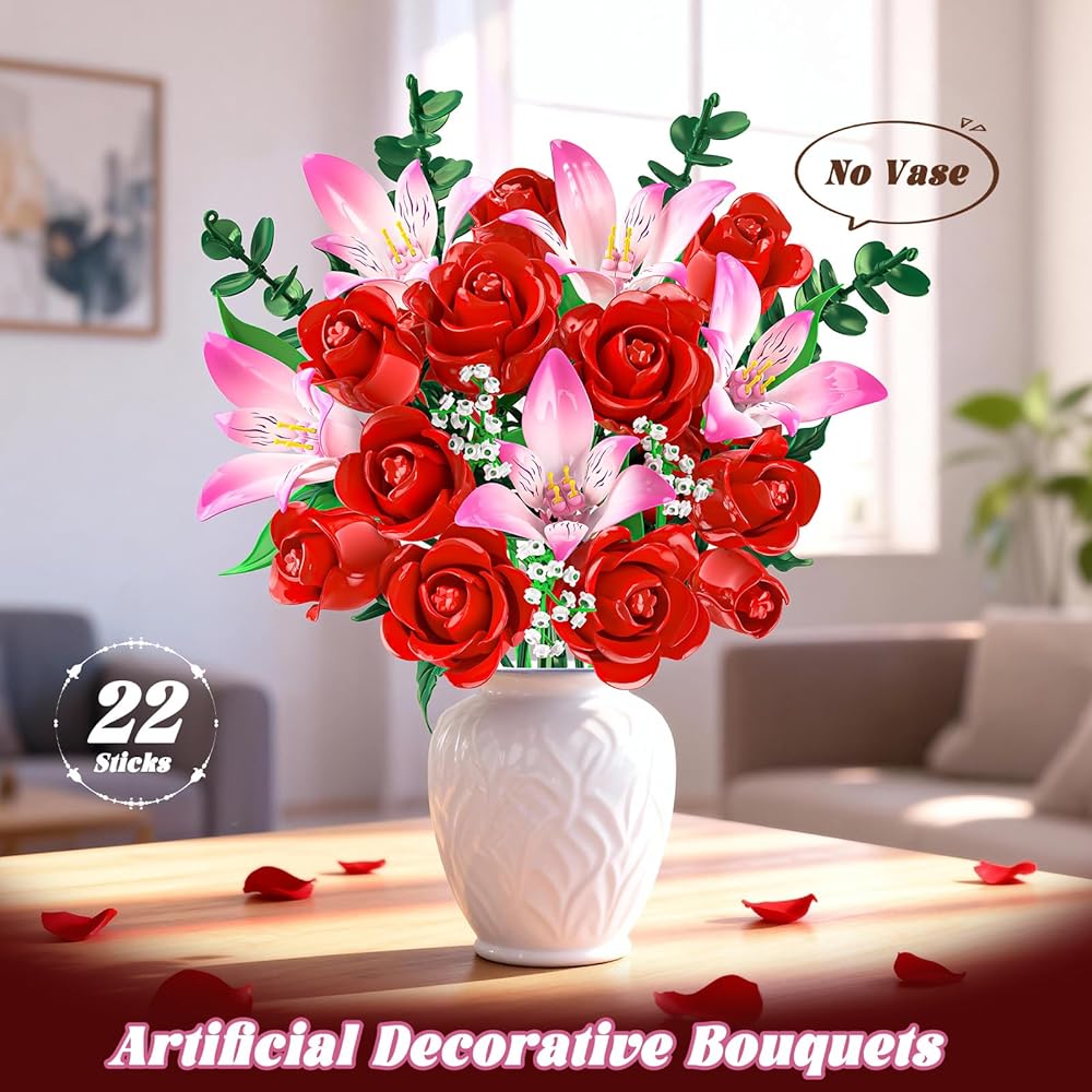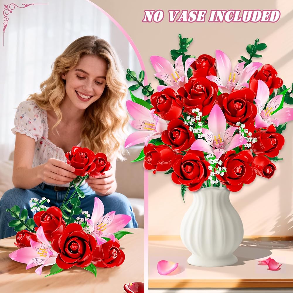 THOUGHTFUL GIFT WITH MEANING - Celebrate your love with a bouquet that never fades. Designed to capture romance in full bloom, this floral plant is a meaningful gift for wives, girlfriends, or anyone special to you on Valentine's Day, birthdays, Mother's Day, or anniversaries. Even more special, building it together creates shared memories - turning every piece into a symbol of time, care, and love spent side by side.