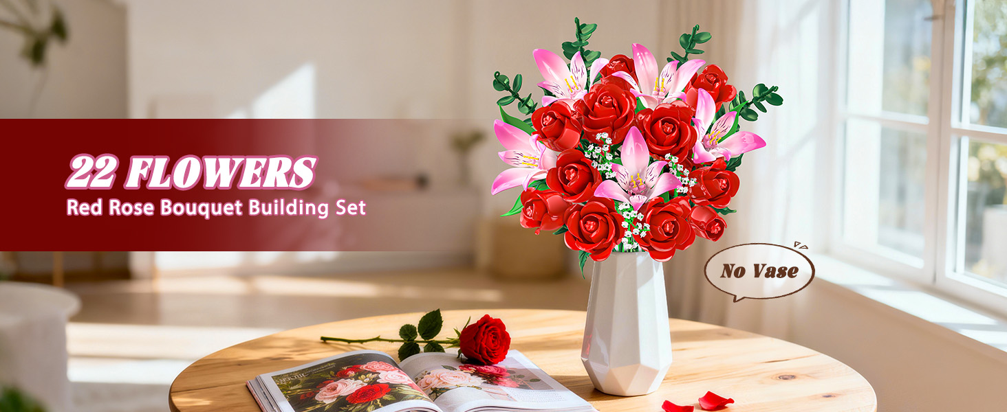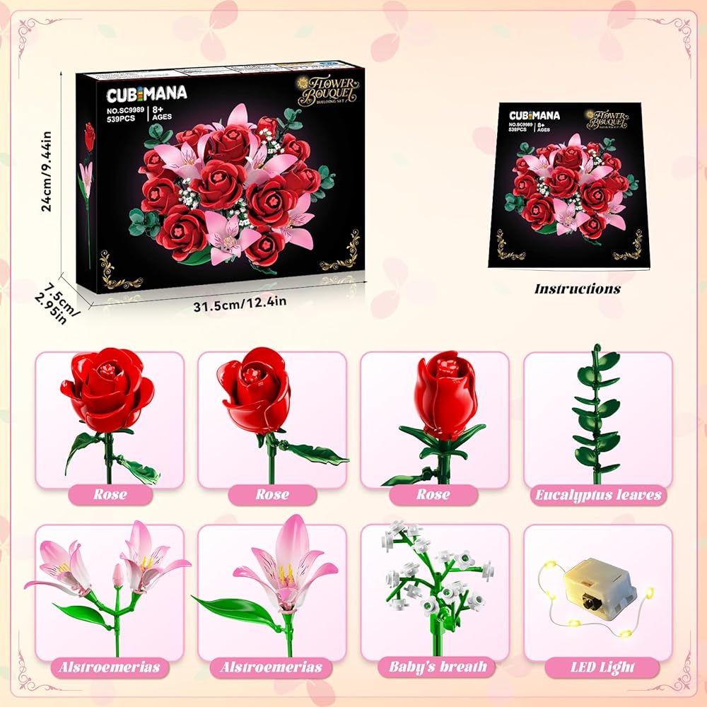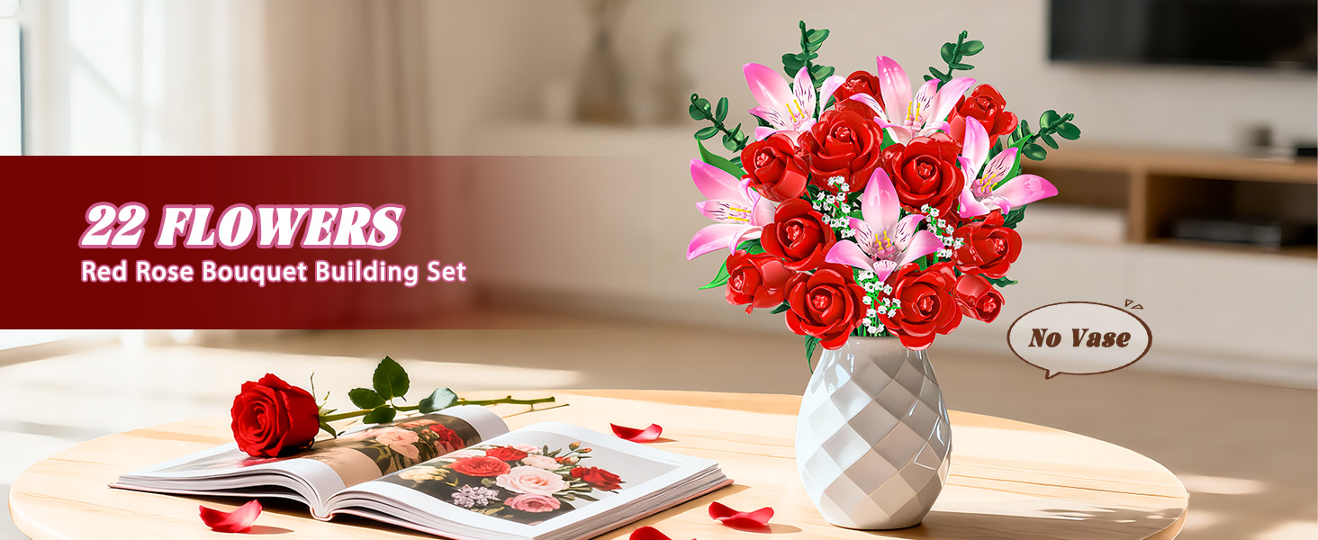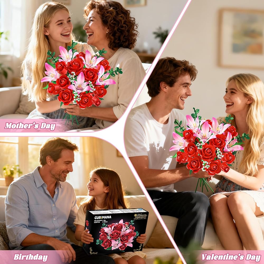 THOUGHTFUL GIFT WITH MEANING - Celebrate your love with a bouquet that never fades. Designed to capture romance in full bloom, this floral plant is a meaningful gift for wives, girlfriends, or anyone special to you on Valentine's Day, birthdays, Mother's Day, or anniversaries. Even more special, building it together creates shared memories - turning every piece into a symbol of time, care, and love spent side by side.