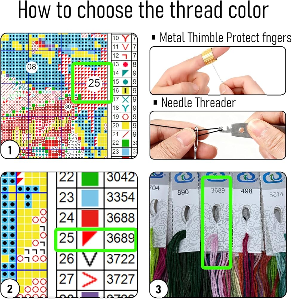 Easy-to-Read Pattern: The fabric features color-coded symbols that correspond to each thread shade. The matching chart helps you follow the pattern step by step, keeping the process organized and approachable.