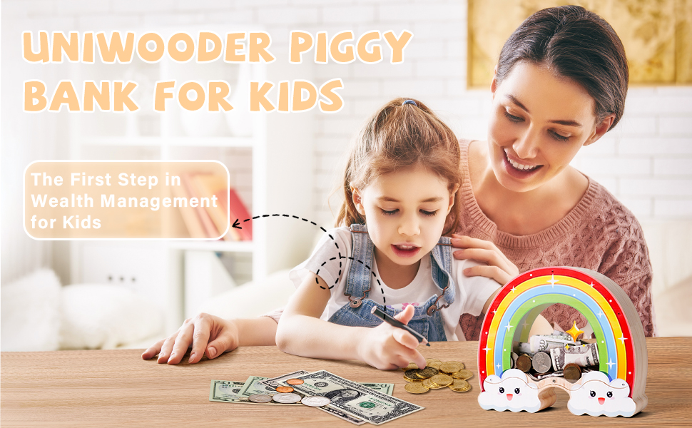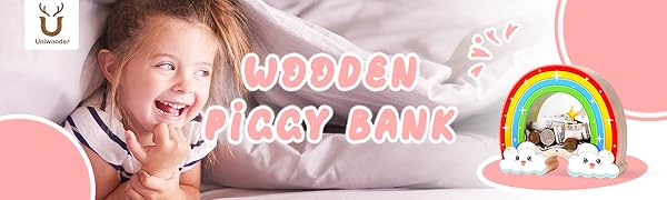 Premium Materials and Craftsmanship - This piggy banks for kids is made from pine wood and acrylic, features smooth edges and vibrant UV printing. Its child-safe design and ideal size make it easy for toddlers and older children to handle. Size:9.1 in * 8.3 in * 2.7 in