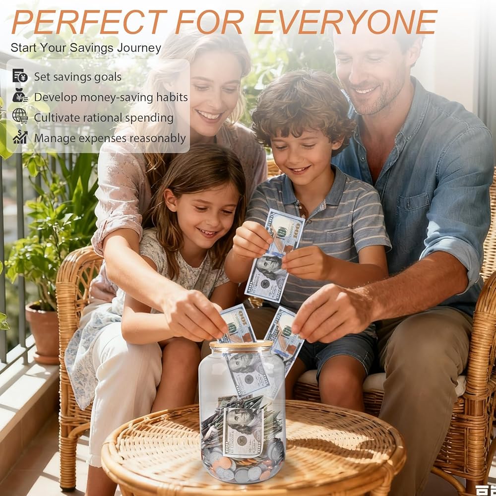 • ✅Clear Money Jar: The clear openable piggy bank is made from durable and thickened PET plastic. Compared to glass or ceramic piggy banks, which are heavy and tend to break, this cash piggy bank is unbreakable and lighter than glass coin jars. The highly clear look provides a clear and tangible representation of your financial progress over time. It's adding a layer of fun to the growth of your savings.