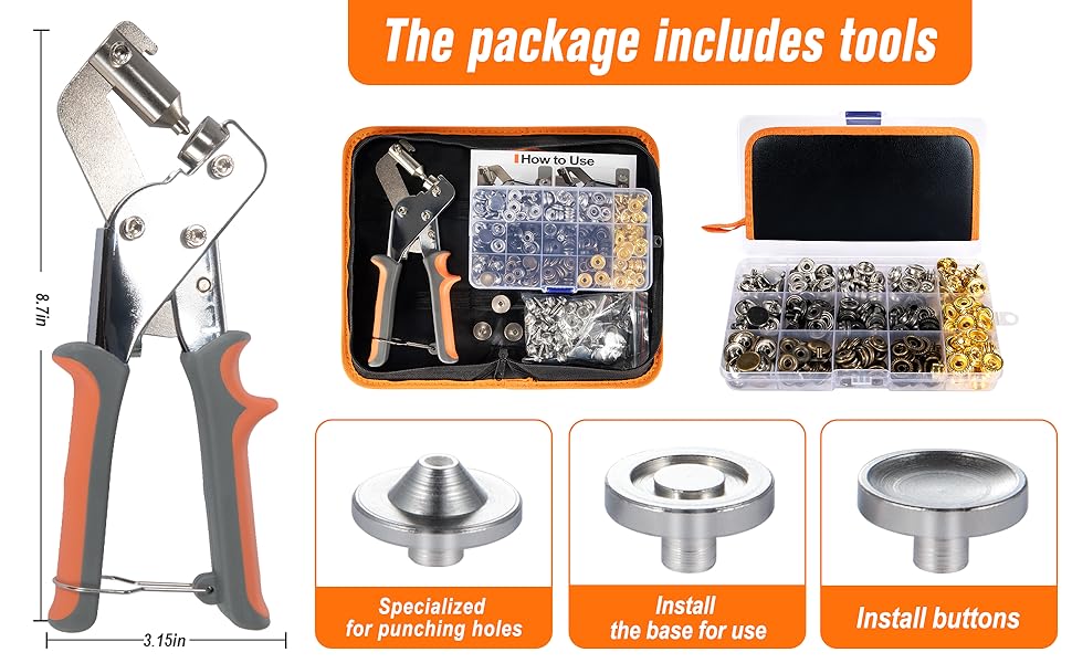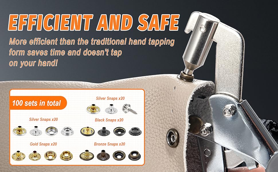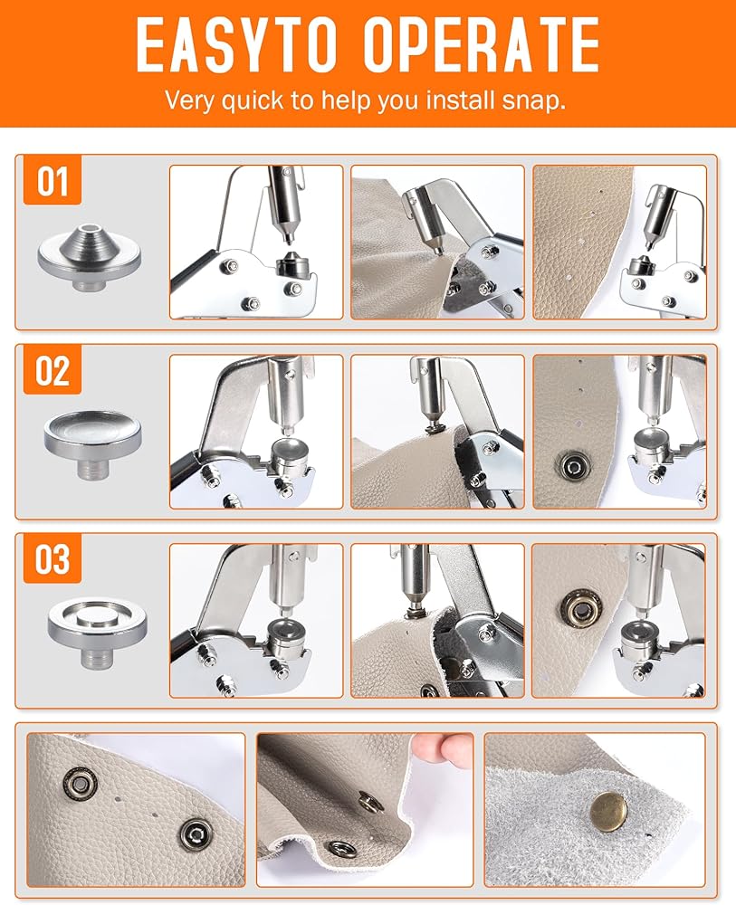 【HEAVY-DUTY & RUST-RESISTANT】 All snaps are made of premium stainless steel with 4 stylish finishes (gold, silver, copper, black) to match any project. The steel tool and impact-resistant storage case protect against drops, dust, and moisture, ensuring long-lasting performance for indoor/outdoor use.