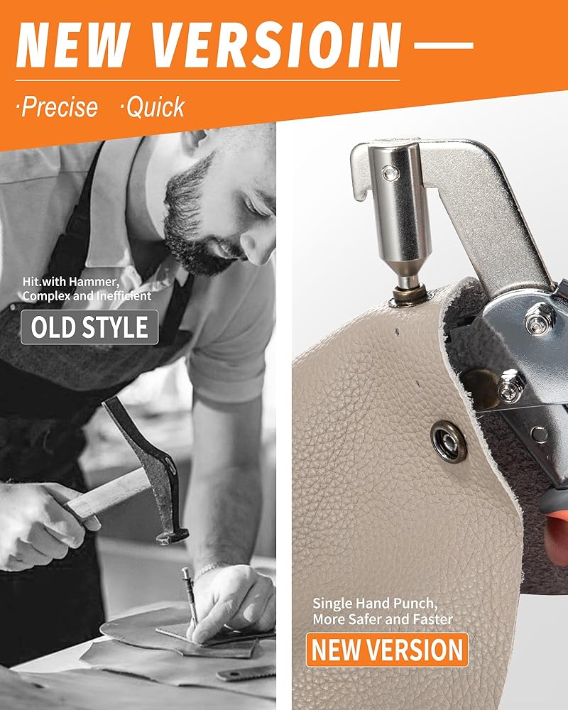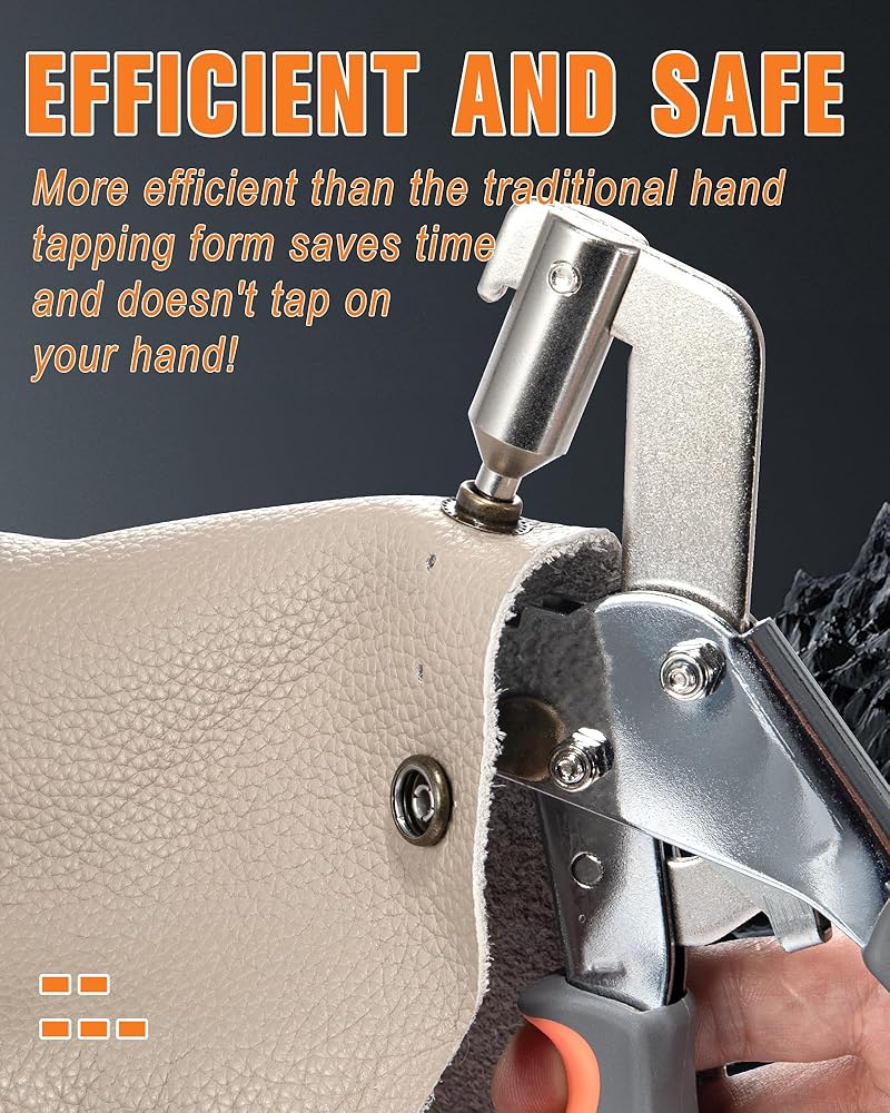 【EFFORTLESS ONE-HAND OPERATION】 Designed with a double-pole structure and ergonomic non-slip rubber handle, this snap tool saves 50% more effort than traditional kits. The magnetic dies allow quick, secure die changes without fumbling, so even beginners can install snaps smoothly in minutes.