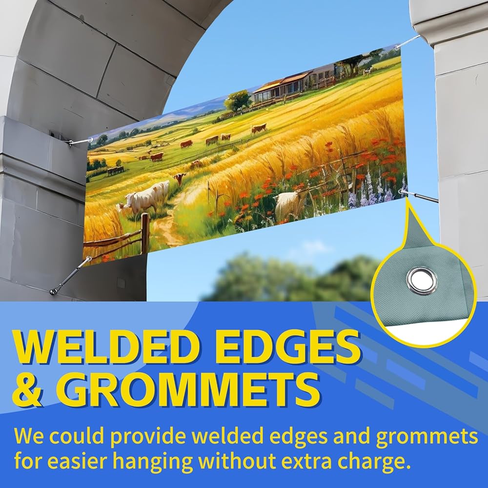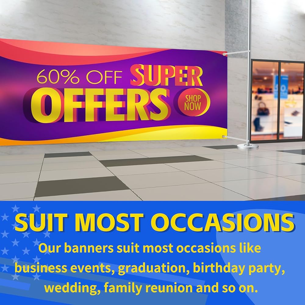 Sturdy & User-Friendly Design: Single-printed fabric banner, fade-resistant, easy to clean with a wipe; Our banners are equipped with grommets, easier to be hang up for versatile suspension