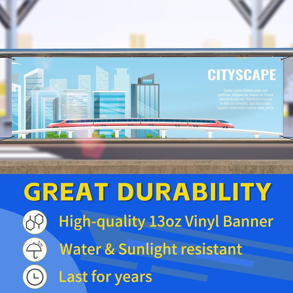 Premium Vinyl Material: Waterproof, UV resistant, tear-resistant, no-crease, sturdy and reusable, lightweight, easy to carry and hang. Great painting technique presents vibrant colors and sharp details. Ideal choice for your business or party
