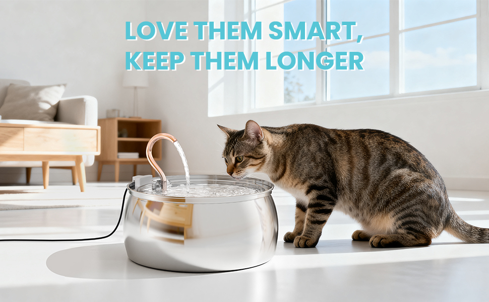 Easy to Set up and Clean - With fewer parts than most models on the market, set up takes virtually no time. Also cleaning the stainless steel cat water fountain just made easier, just rinse and go, then gently wipe with a soft cloth to restore its sparkling metal appearance. And it's dishwasher safe, too.
