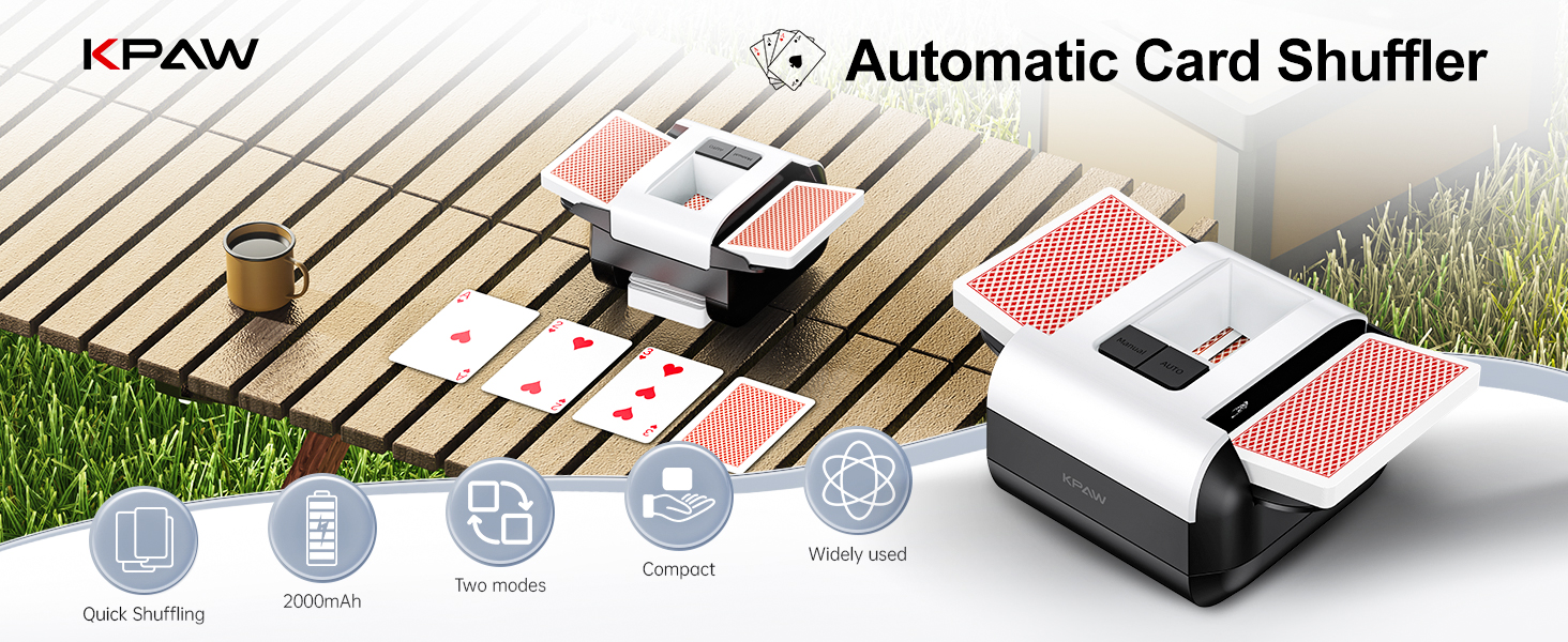 Electric Card Shuffler: KPAW Automatic card shuffler USB-C rechargeable design, auto shuffler machine powered by a 2000mAh rechargeable battery, no AA batteries needed, provide cost-effective solutions
