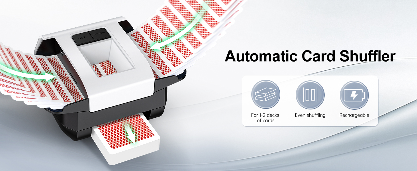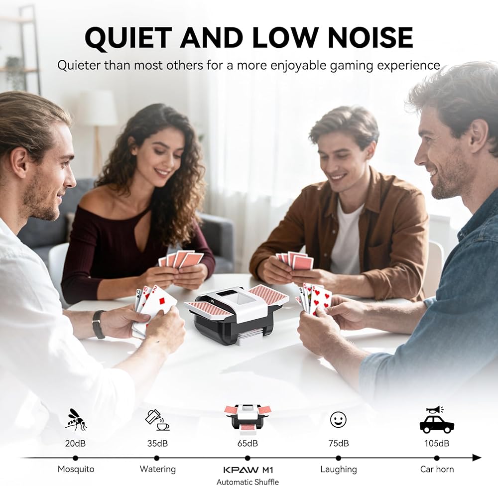 Low Noise Automatic Shuffler : Operating at just 65dB. Shuffling the entire deck takes only 3 seconds, perfect for home or casual play. Enjoy a quieter, more pleasant gaming experience with this efficient shuffler, whether you're playing high-stakes poker or a casual round