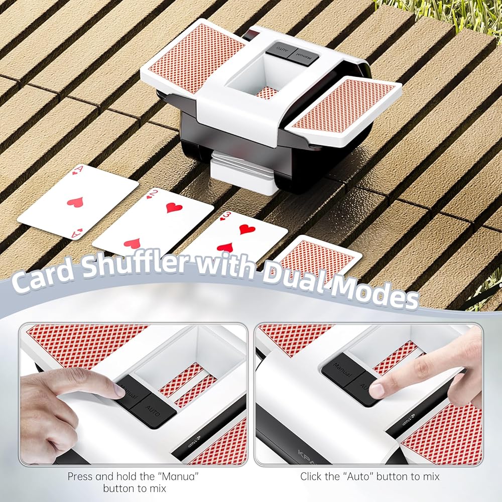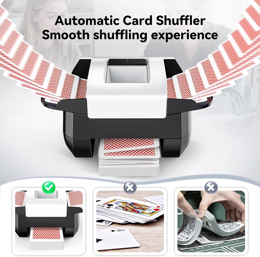 Card Shuffler 2 Deck: The automatic shuffling machine can handle 1-2 decks at a time, making it perfect for various card games including Texas Hold'em, Bridge, UNO, Blackjack, etc., ensuring smooth and seamless shuffling every time
