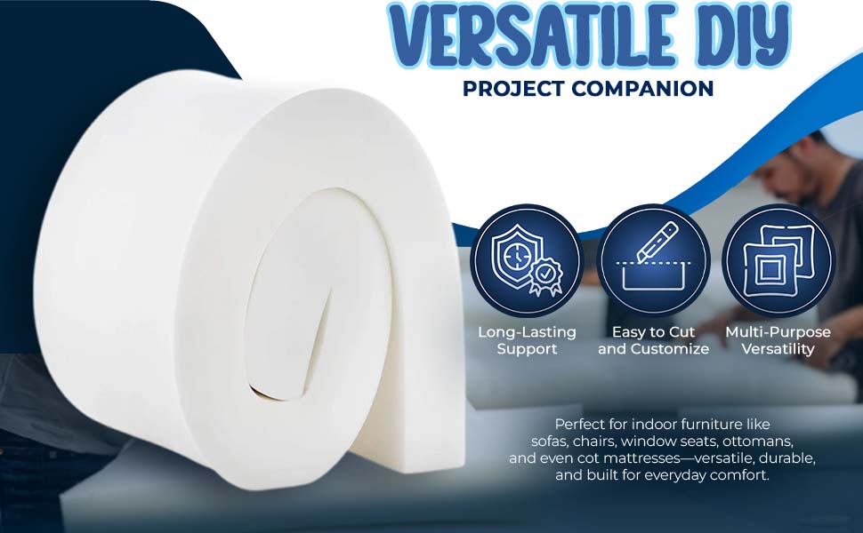 [ Use For a Variety of Projects ] Customized to repair worn down cushion foam, create custom cushions for patio chairs seat cushions and bench seat cushions, bar stools, upholstered headboards, rv seats, boat seats, couch cushions, golf cart seats, cot mattress pad, window seat cushions, restore vintage furniture, foam mattress toppers and carrying cases for delicate glass or ceramic items, packing foam for delicate glass or ceramic items, accent pillow foam inserts and many other diy projects