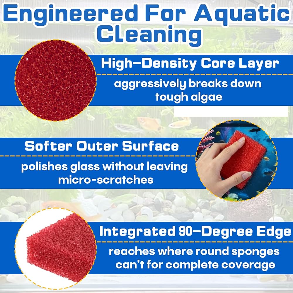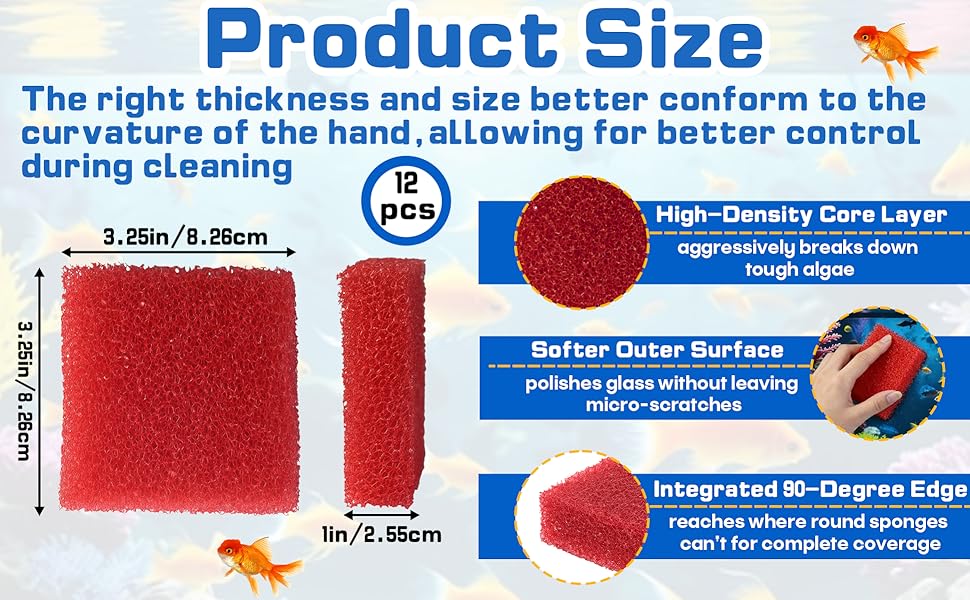 Hand-Fit Size: Measuring 3.25" L x 3.25" W x 1" H, this fish tank scrubber fits in your palm for precise control. The optimized thickness maintains cleaning power through repeated use as a durable aquarium sponge