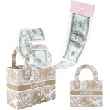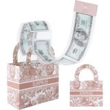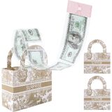 Vane Oak Money Pull Box for Cash, Surprise Money Boxes Retro Jacquard Mini Gift Bag with 30 Pcs Transparent Bags for Birthday Party Christmas
