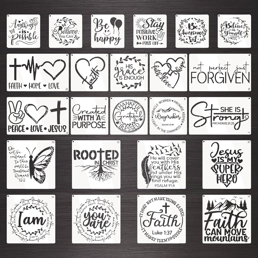 24 Pcs Inspirational Word Stencils, Reusable DIY Painting Templates for Wood, Canvas, Wall, Cards & Scrapbooking Decor, Quote and Phrase Craft Stencils Set