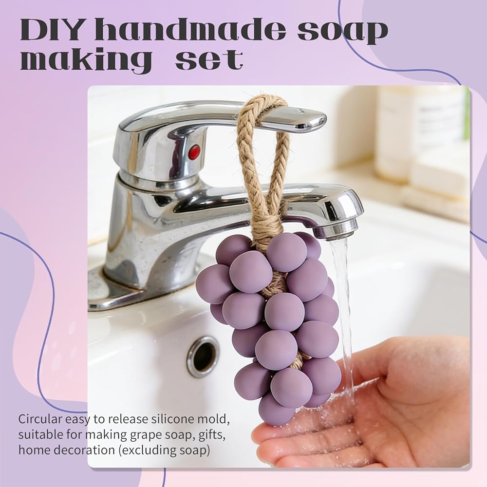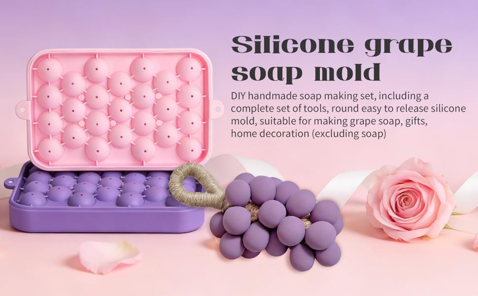 Cute Handmade Soap Grape Mould for Eye-Catching Finished Soaps:Comes with 2 color-matched grape molds (purple & pink), each capable of making multiple "small grape" soaps. Perfect for personal use or gifting.
