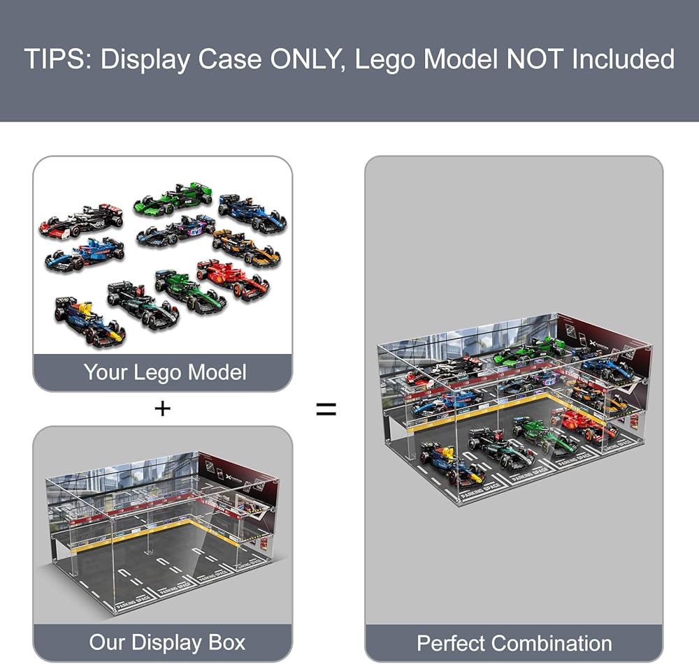 【Superior Protection & Dustproof】 Keep your lego formula 1 race car pristine with our ultra-clear acrylic case—over 98% transparency for a crystal-clear view. The anti-yellowing material ensures long-lasting beauty and durability.