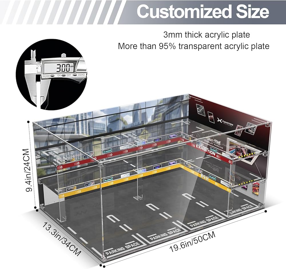【HD Printed Backplate – Stylish Display】 Enhance your display with our high-definition printed backplate, featuring a thematic speed car parking space design that adds a sporty & fashionable touch to your home or office decor.