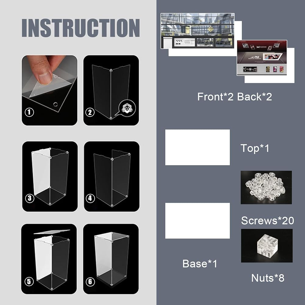 【Important Notes】① Displayed collectibles are for illustration only and not included.② Peel off the protective white film before assembly for optimal clarity.③ Read the manual carefully before setup. For any questions, contact us via Amazon Messages.