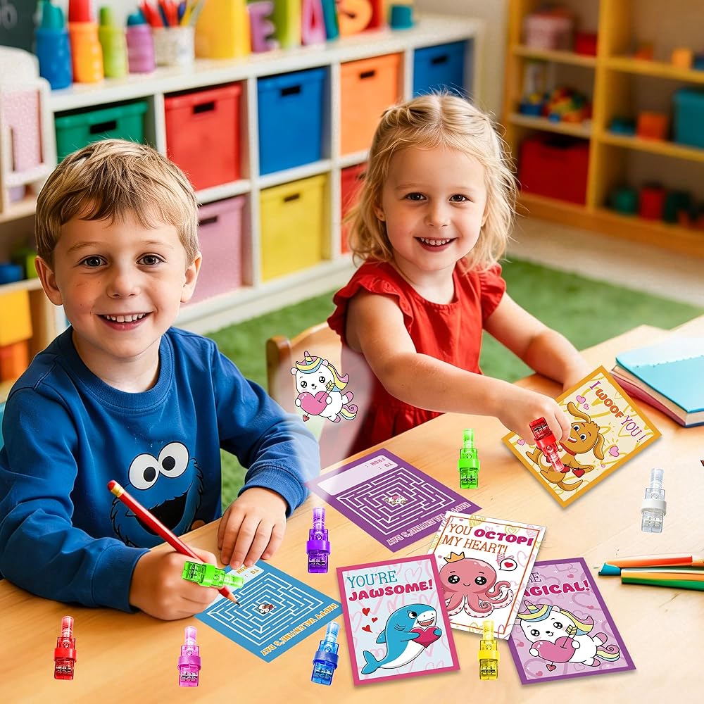 Non Candy Valentines, The kid valentine card sets are the perfect combination of valentine theme and finger lights, ideal for kids hand out to their class and have fun, a great non-food valentines option for valentines Day