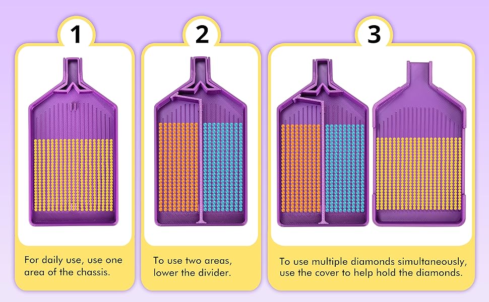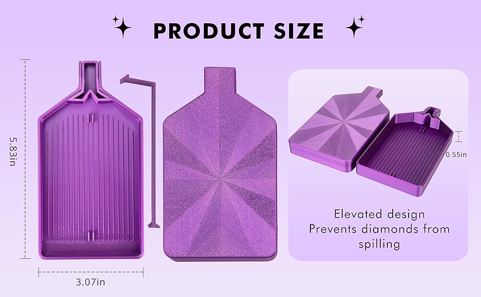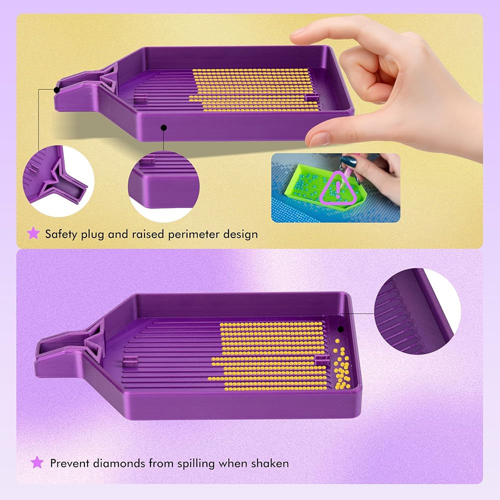 【Aesthetically Pleasing and Colorful Design】: The diamond painting trays features a beautiful purple color, with an elegant and unique texture design on the lid. It displays gorgeous luster and patterns under different light angles, enhancing the elegance of any diamond painting creation. This diamond painting tray has smooth lines and rounded edges, providing not only aesthetic appeal but also increased safety and effective protection for users. It is an ideal choice for diamond painting creation.