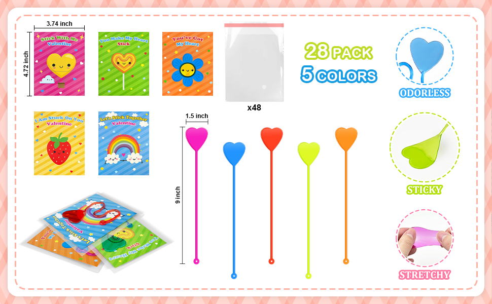 Valentine Gifts for Kids – This 28-pack Valentine set features bright sticky heart toys paired with beautifully designed exchange cards. A fun and festive choice for classroom exchanges, Valentine parties, school activities, and friends' gift sharing.