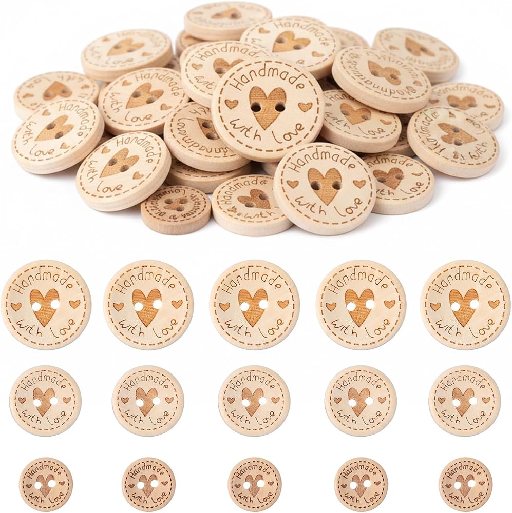 Packing List: 150 PCS Wooden Handmade With Love Buttons
