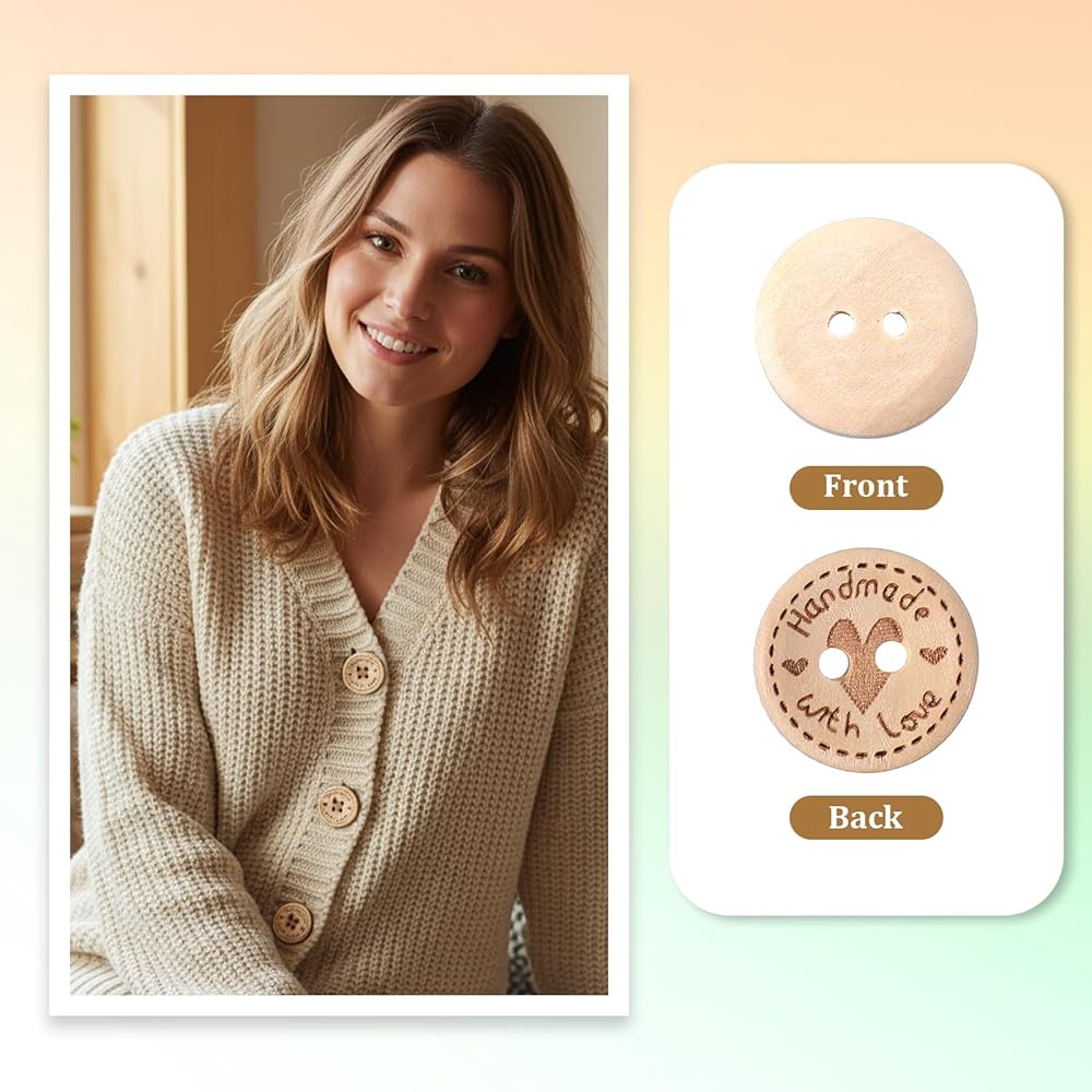 Complete Crafting Package: You receive a comprehensive set of 150 wooden clothing buttons in three sizes, providing sufficient quantity for multiple projects and sharing with fellow craft enthusiasts.Each button is carefully crafted with smooth edges and consistent quality, ensuring reliable performance whether you're creating clothing embellishments, DIY decor, or gifts for special occasions