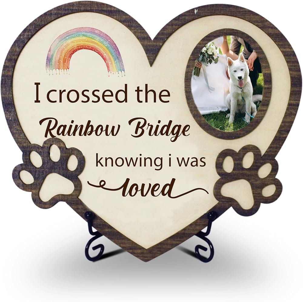 Rainbow Bridge Pet Memorial Wooden Photo Frame – “I Crossed the Rainbow Bridge Knowing I Was Loved" Sympathy Gift for Dog or Cat Loss, Bereavement Keepsake for Grieving Pet Owners. (059)