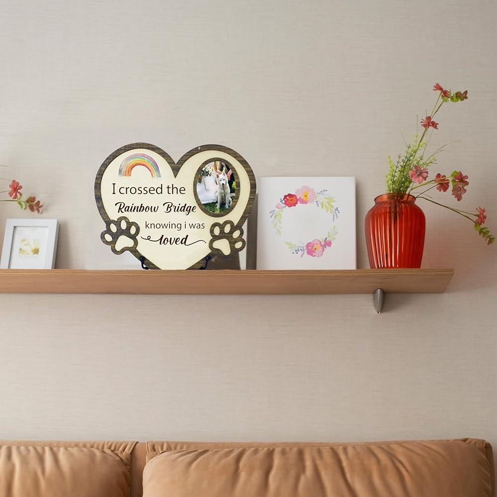 Versatile Use: More than just a memorial piece, this wooden plaque can also display a cherished photo of your pet. Ideal for homes, offices, or memorial spaces, it can be placed on a desk, shelf, or wall to keep your pet's memory close.