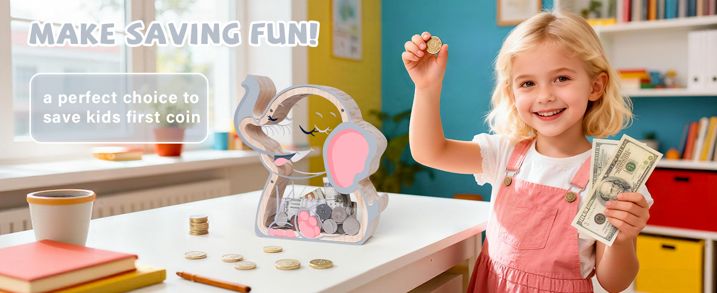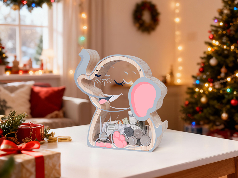 A Top - Notch Gift for Elephant Lovers & Savers-Looking for a birthday, holiday, or “just because” gift? This wooden elephant piggy bank is a slam dunk for elephant lovers, kids, or anyone who digs cute, practical decor. It's a thoughtful gift that encourages saving while adding a bit of whimsy to their space.