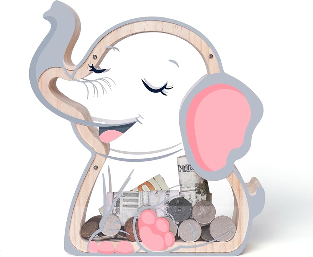 Super Adorable Elephant Design: This wooden piggy bank has a cute - as - a - button elephant look—with soft gray hues, pink ears, and a cheerful smile that'll win over any animal lover. Whether you're stashing coins, adding a whimsical vibe to a kid's room, or gifting a sweet savings companion, this elephant bank makes saving money a totally charming journey.