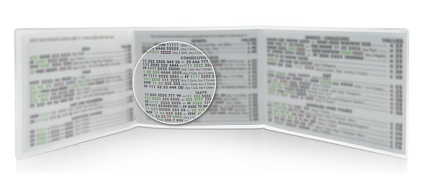 5.Prevent Tearing and Broken: An Ideal Gift for Mahjong Enthusiasts and perfectl accessory for Mahjong set.Covers the cards completely and yet the cards are still easy to fold up. Makes your NMJL cards stay durable and protected. With our Mahjongg card sleeves, your cards can last for longer time to prevent tearing and other broken.